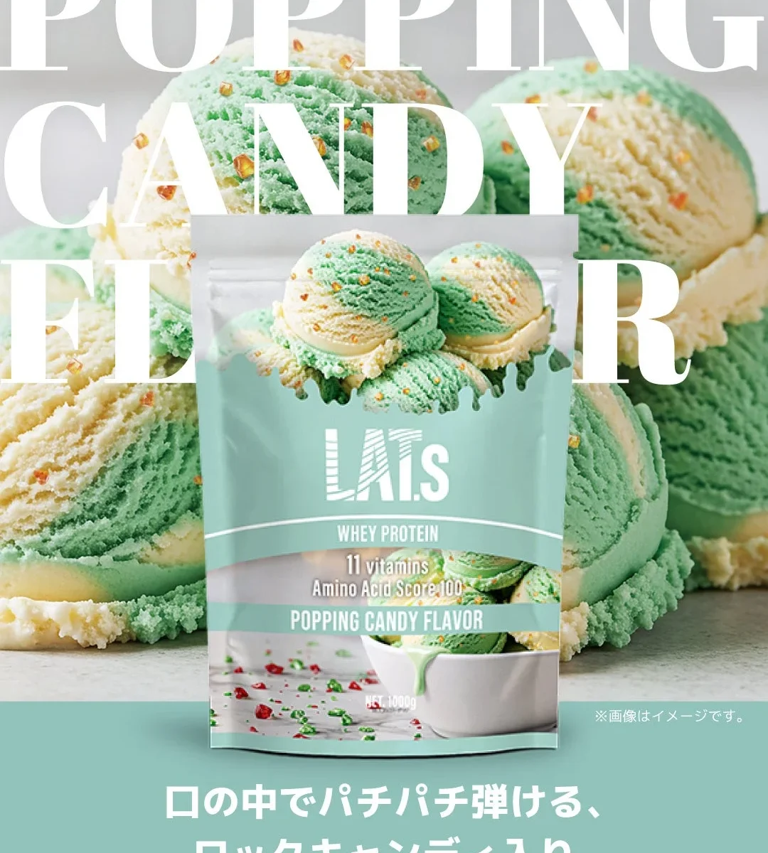 国内初!パチパチ弾けるロックキャンディ入りプロテイン「LAT.s ポッピングキャンディ風味」がEC限定発売