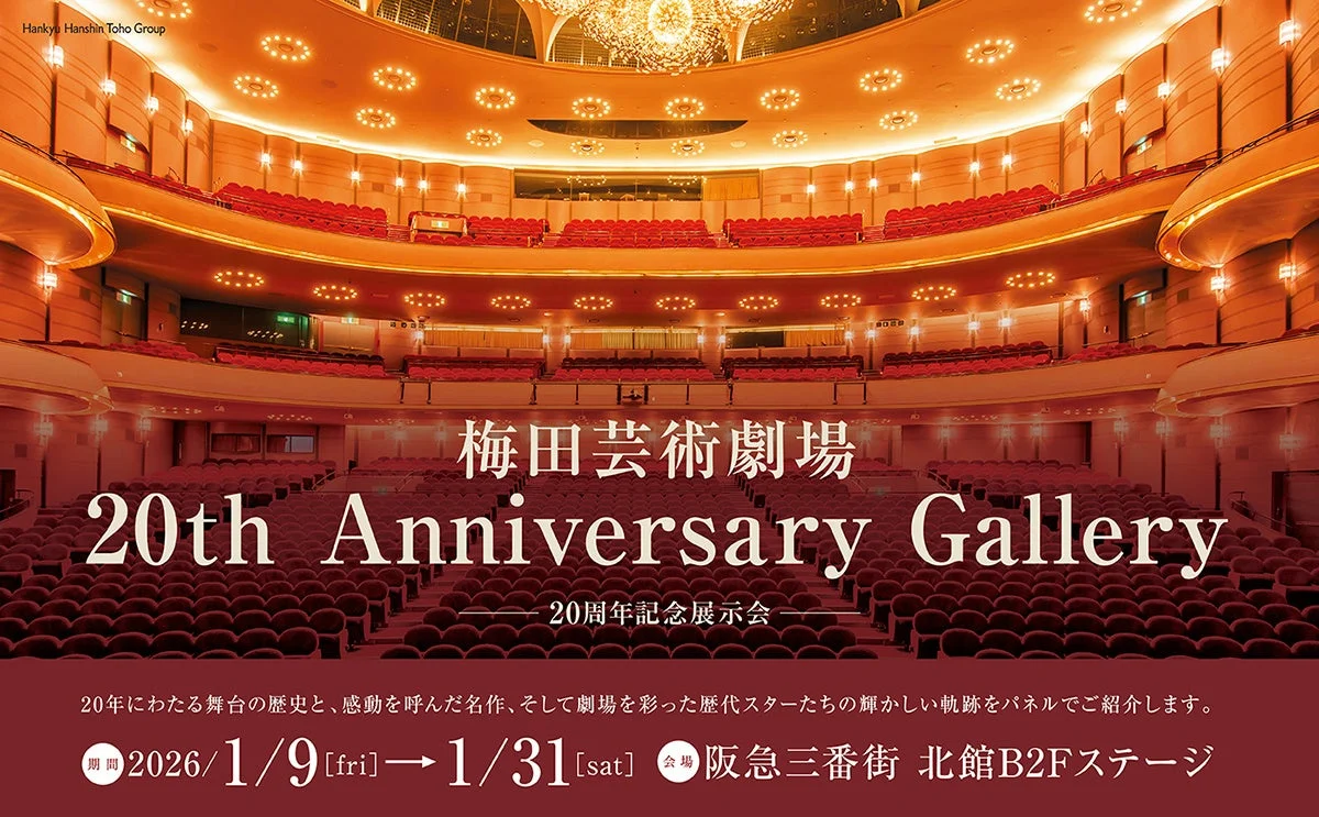 大阪梅田にある商業施設「阪急三番街」で、2026年1月9日(金)から1月31日(土)まで、「梅田芸術劇場 20th Anniversary Gallery -20周年記念展示会-」が開催されます。