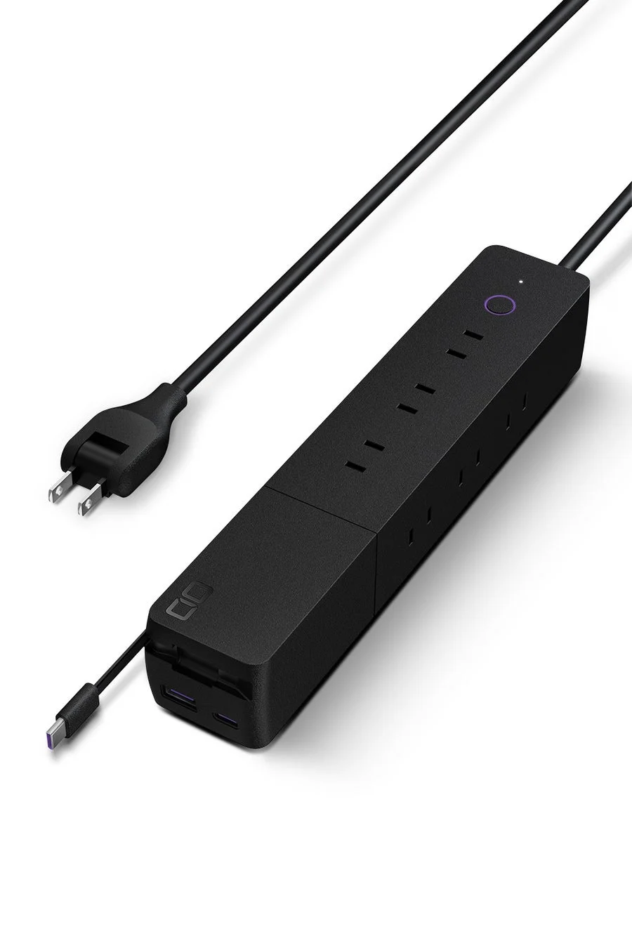 分離可能なコードリール内蔵充電器と、最大7口の雷サージ対応電源タップを組み合わせた多機能製品です。一体デザインにより、美しい佇まいを実現しています。