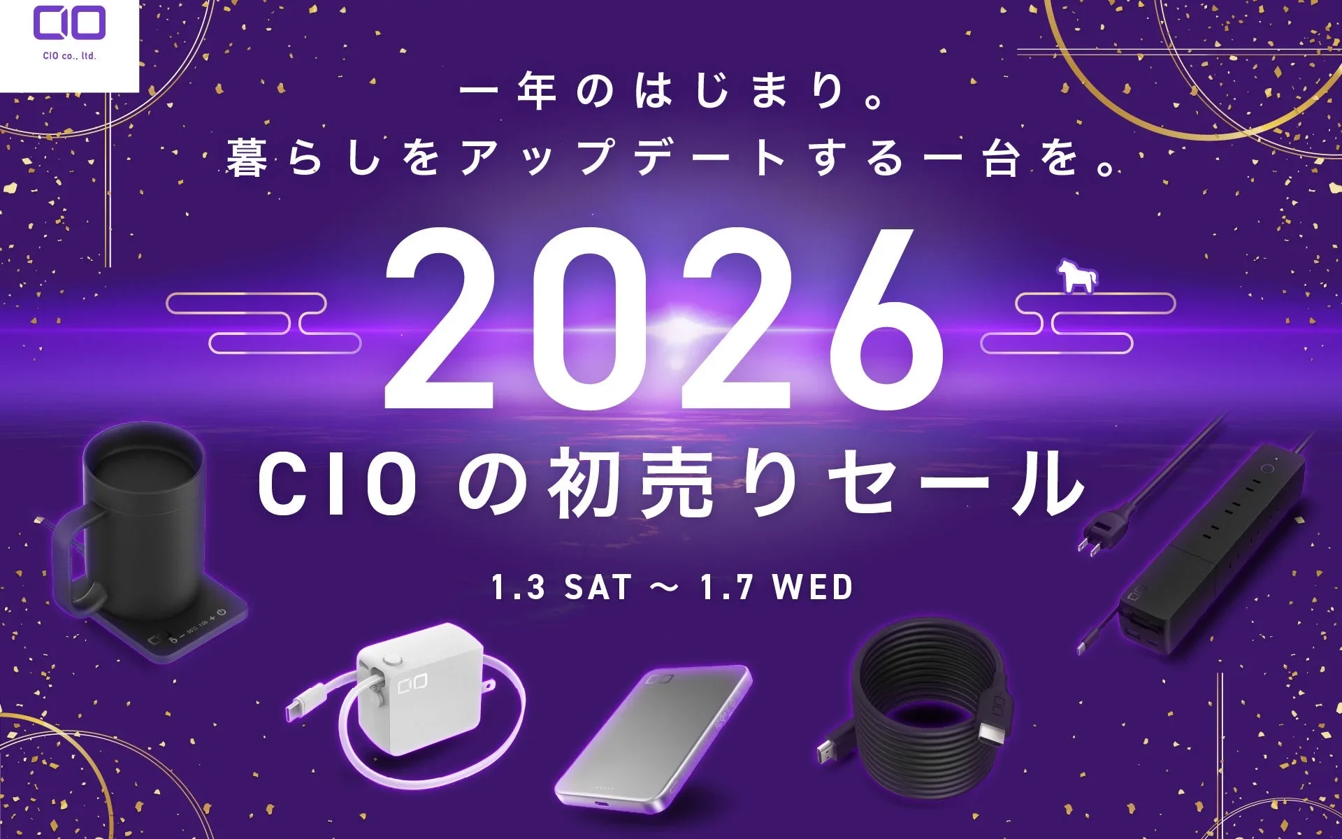 「第1回Amazon スマイルSALE」が、2026年1月3日(土)9時からAmazonでスタートします!このビッグセールに、日本発のガジェットメーカーである株式会社CIOが参加し、最新の充電ガジェットを最大50%OFFの特別価格で提供します。