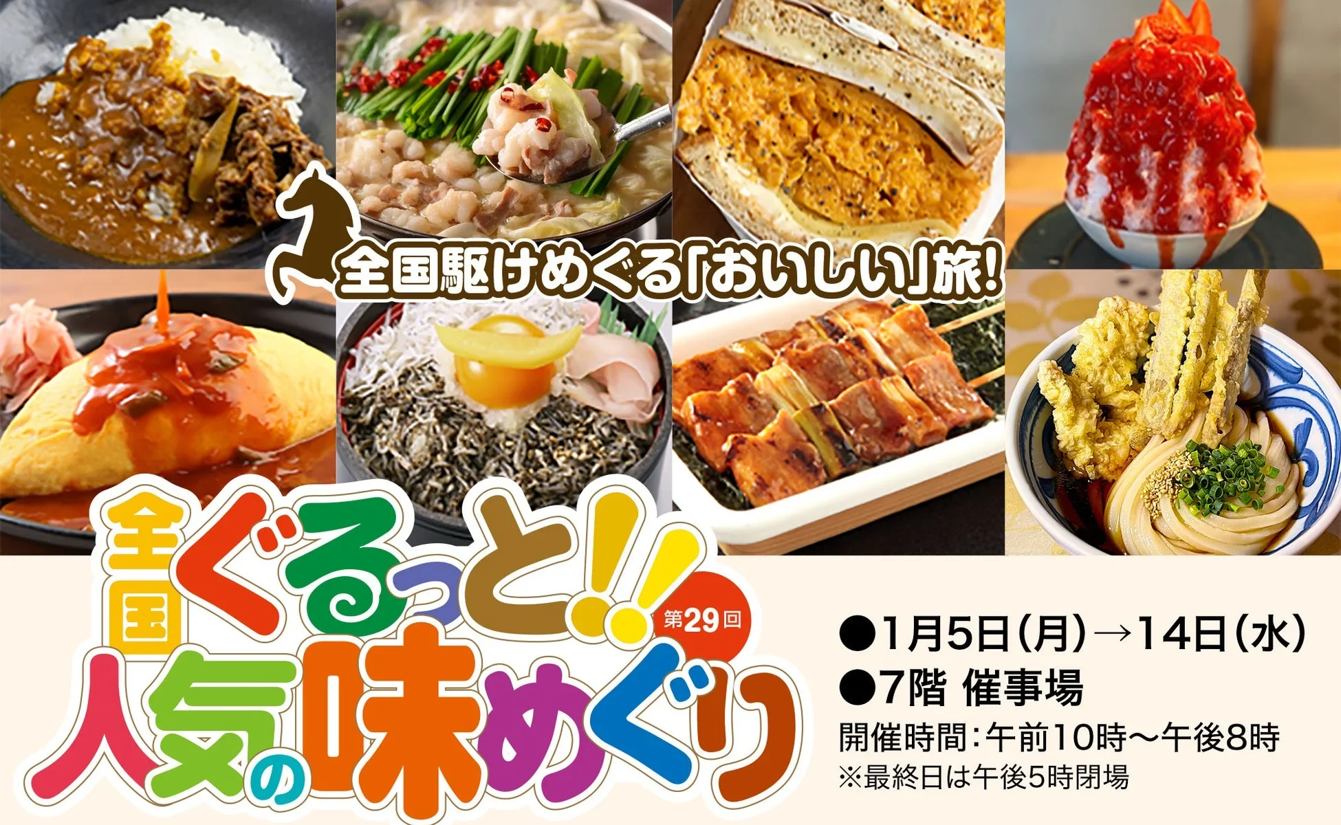 「年末年始は家でゴロゴロしちゃった…」という方も多いのではないでしょうか?そんなあなたに朗報です!大丸札幌店では、2026年1月5日(月)から1月14日(水)まで、7階催事場で『第29回 全国ぐるっと!!人気の味めぐり』が開催されます。