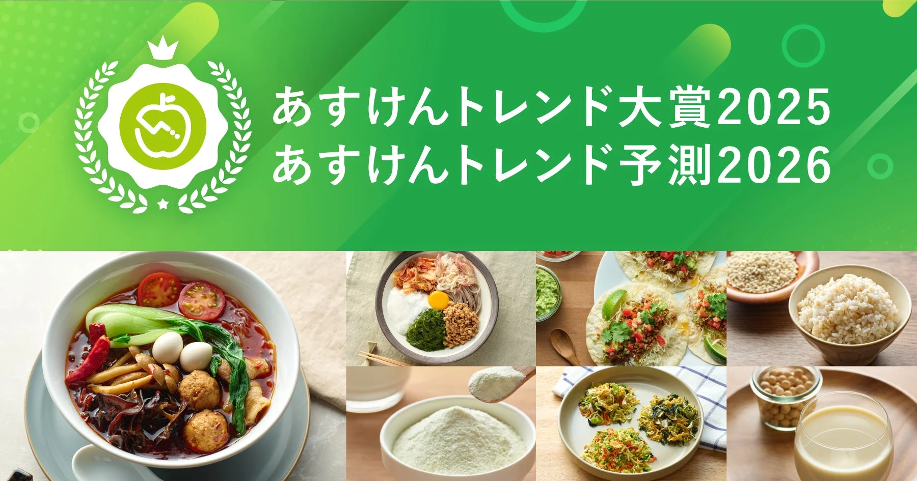 AI食事管理アプリ『あすけん』は、累計会員数1,300万人以上、90億件を超える食事記録データをもとに、2025年の「食と健康」のトレンド料理・食材を選出する『あすけんトレンド大賞2025』と、2026年の注目食材を予測する『あすけんトレンド予測2026』を発表しました。