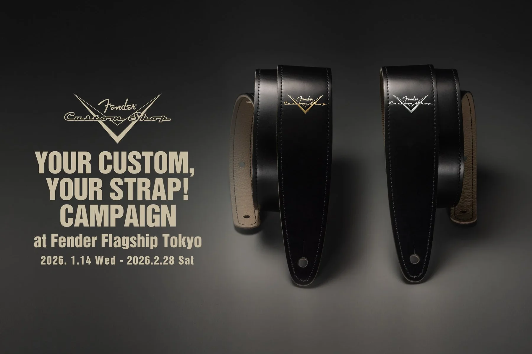 Fender Custom Shopのファンに嬉しいお知らせです!Fender Flagship Tokyoでは、2026年1月14日(水)から2月28日(土)までの期間限定で、「Fender Custom Shop – Your Custom, Your Strap! Campaign」が開催されます。