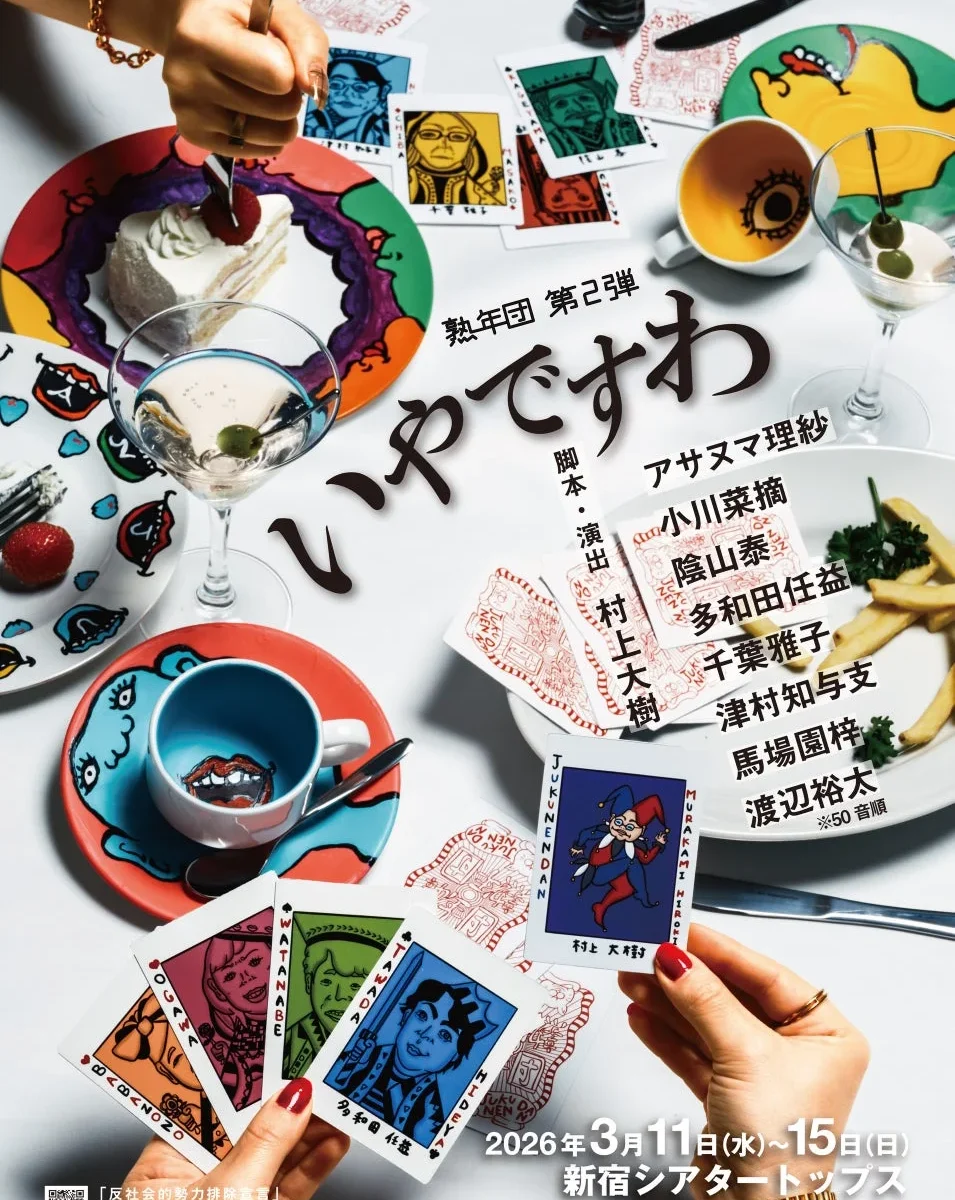 小川菜摘さんとアサヌマ理紗さんを中心に、「愉快な人たちと楽しい舞台を作りたい!」という思いで結成された「熟年団」。第1弾公演『チェリー・ホープを知ってるかい。』が大好評だったのに続き、今回の第2弾では、千葉雅子さんに加え、新たに陰山泰さん、多和田任益さん、津村知与支さん、馬場園梓さん、渡辺裕太さんといった豪華なメンバーが加わります。世代を超えた役者たちがどんな化学反応を見せてくれるのか、見どころ満載です!