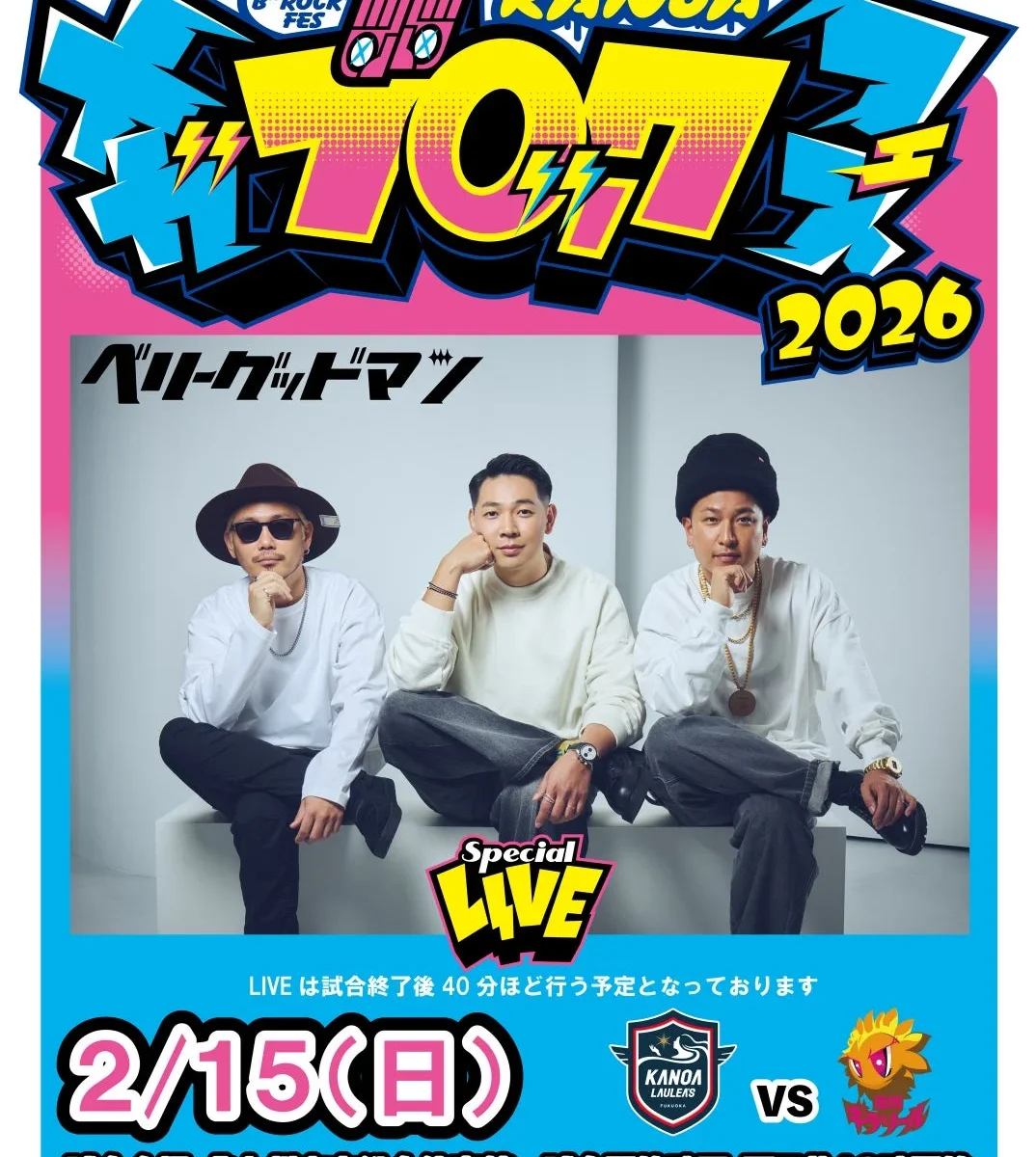 2026年2月14日(土)・15日(日)に北九州市立総合体育館で開催される「KANOA MEGA BROCK FES 2026」に、第二弾アーティストとしてベリーグッドマンの出演が決定しました!