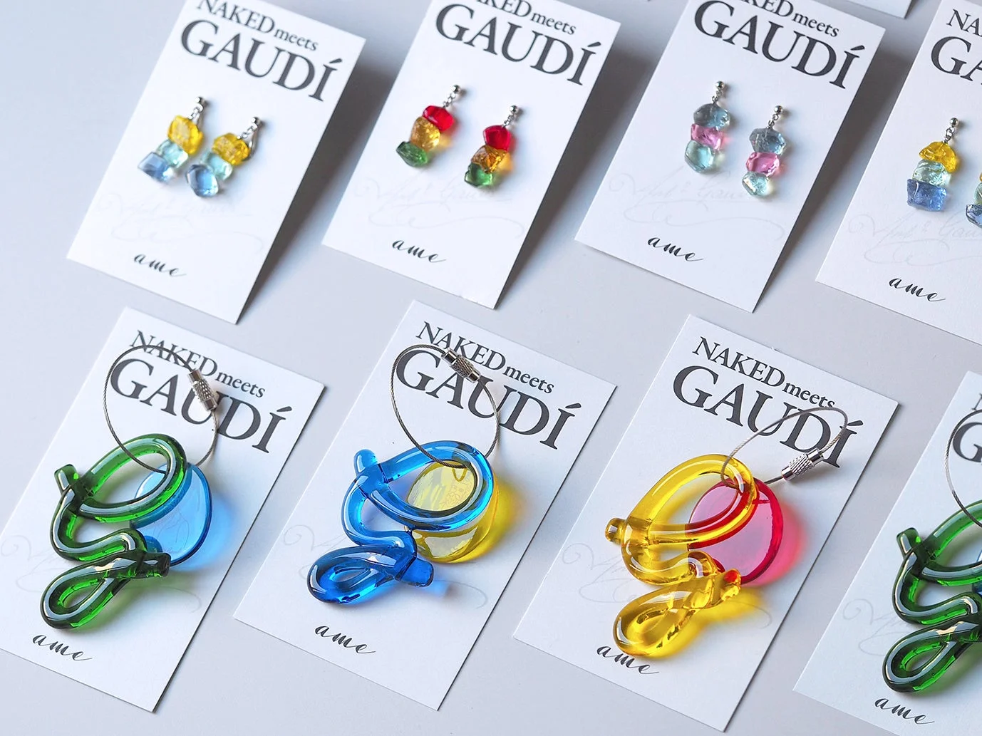 『ame』が今回展開する限定アクセサリーは、ガウディの代表作である「グエル公園」の建築が放つ色彩美からインスピレーションを受けて制作されたんだ。ハンドメイドならではの自由な創造性と、リサイクルプラスチックが持つ独特の魅力を生かした、オリジナルデザインのキーチャームとピアス/イヤリングがラインナップされているよ。