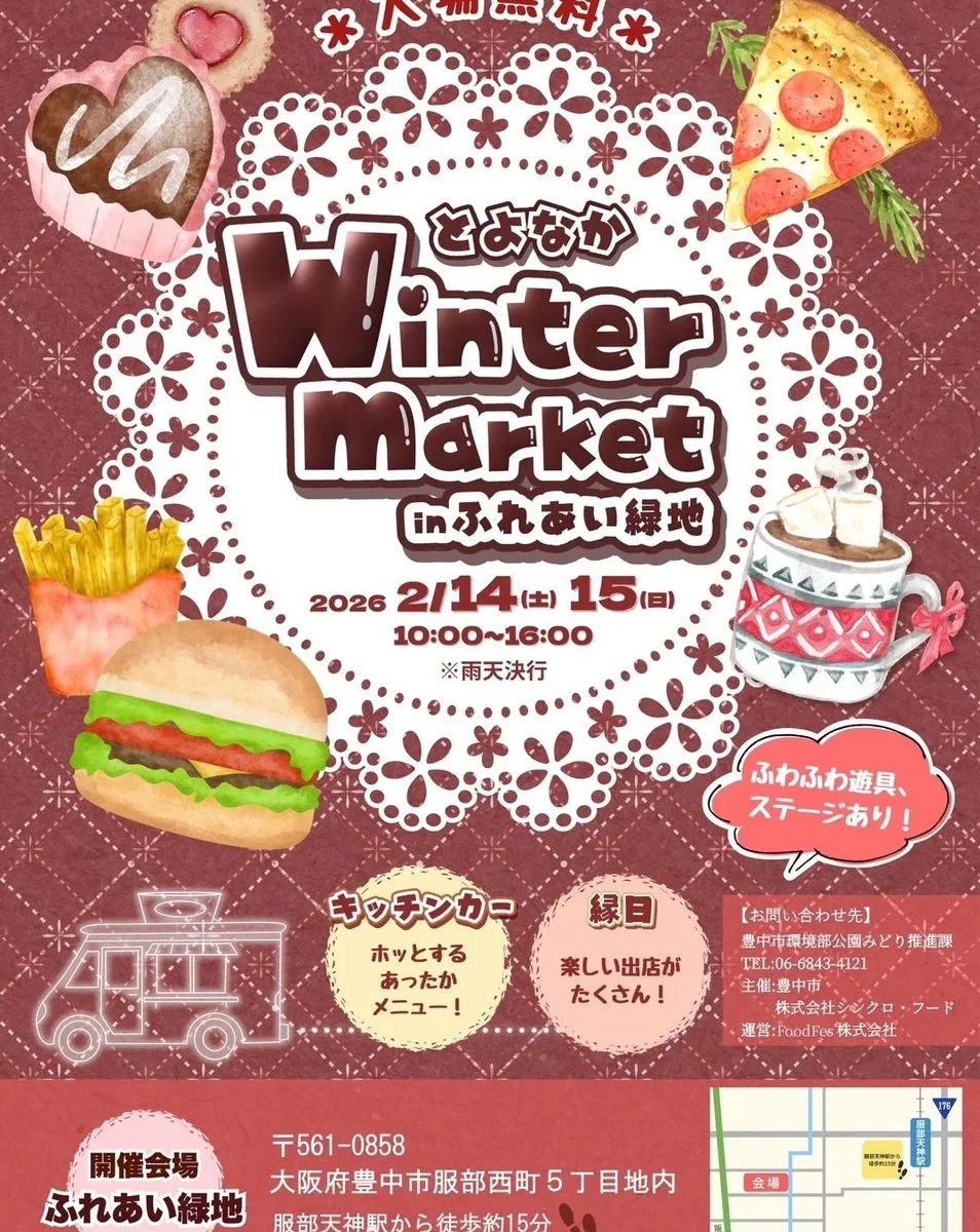 2026年2月14日(土)と15日(日)の2日間、大阪府豊中市の豊中ふれあい緑地で「とよなかWinter market inふれあい緑地」が開催されます!入場無料なので、気軽に立ち寄って冬の週末を楽しめますよ。