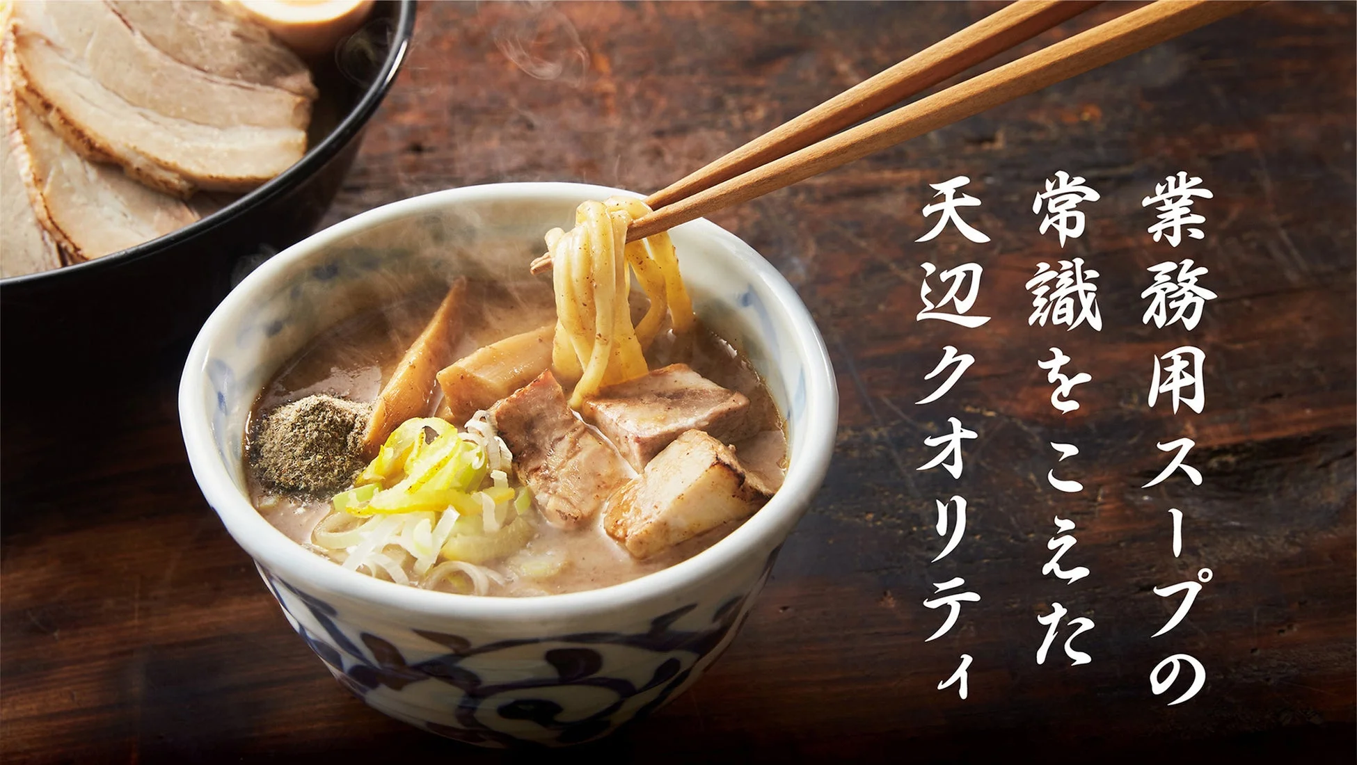 「これからラーメン店を始めたい!」というオーナーさん向けに、スープ以外にもカエシ、香味油、麺といった商品も自社製造で取り揃えているので、これらを組み合わせれば、本格的なラーメンが手軽に提供できるようになりますよ。