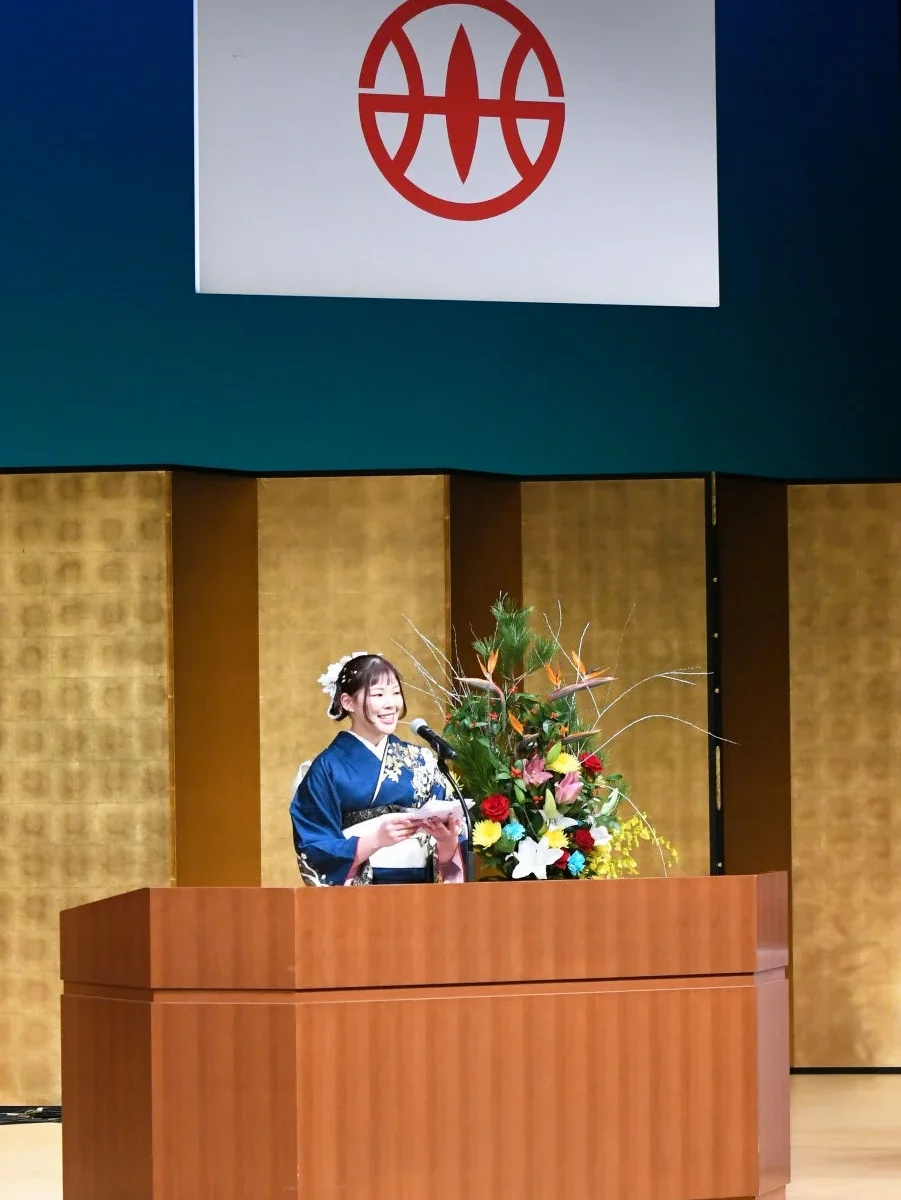 公募で選ばれた2名の司会者とプロの司会者が進行を務め、国歌斉唱、主催・来賓からの式辞・祝辞、そして「はたちの抱負発表」が行われました。また、「川西スマイルナビゲーター」の募集PRも実施されました。