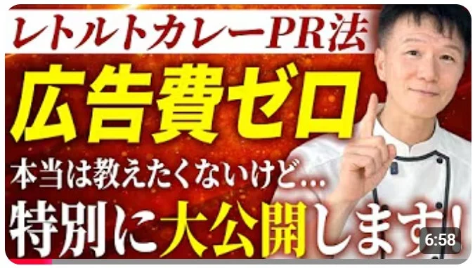 このたび公開された動画では、「強かな儲け上手の企業はレトルトカレーをPRツールに選ぶのか?広告費ゼロで全国に自社のサービスを知らしめるレトルトカレーを駆使した究極のPR法とは?【カレーマーケティング学】」というタイトルで、具体的な方法や成功事例が詳しく解説されています。適切に実施すれば、かなりの成果が期待できる手法だと考えられます。
