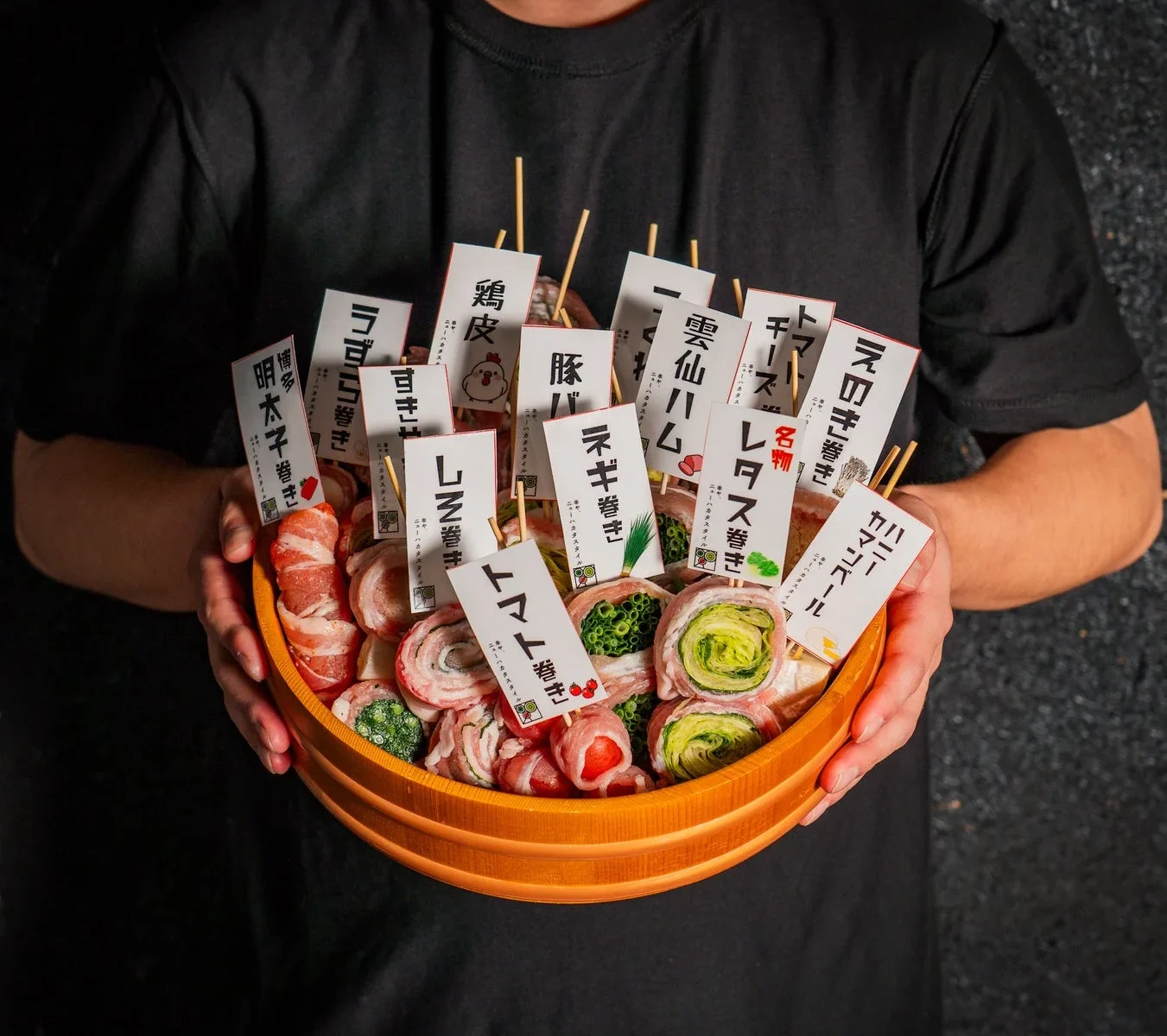 ヘルシーながらボリューム満点の「野菜巻き串」は、ジューシーな肉の旨味と野菜のシャキシャキ感を同時に味わえる魅惑の一品です。熟練の火入れ技でじっくりと炭火で焼き上げられ、素材の旨味が最大限に引き出されています。定番のレタス巻き串をはじめ、旬の野菜を使った15種類が用意されています。