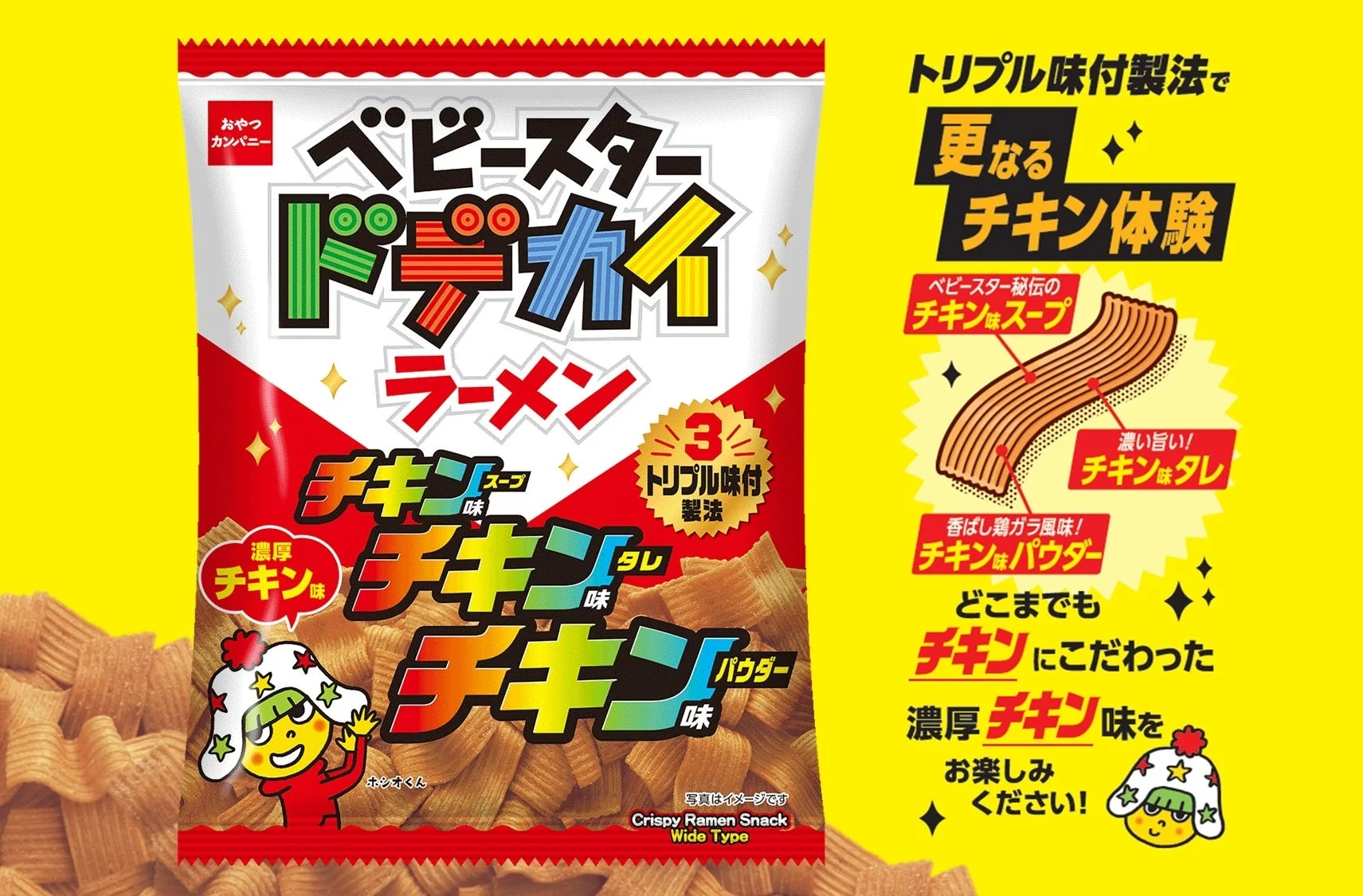 おやつカンパニーから、人気の「ベビースタードデカイラーメン」に新しい仲間が登場しました!その名も『ベビースタードデカイラーメン(チキンチキンチキン 濃厚チキン味)』。2026年1月19日(月)から全国のセブン‐イレブンで順次先行発売されるとのことです。
