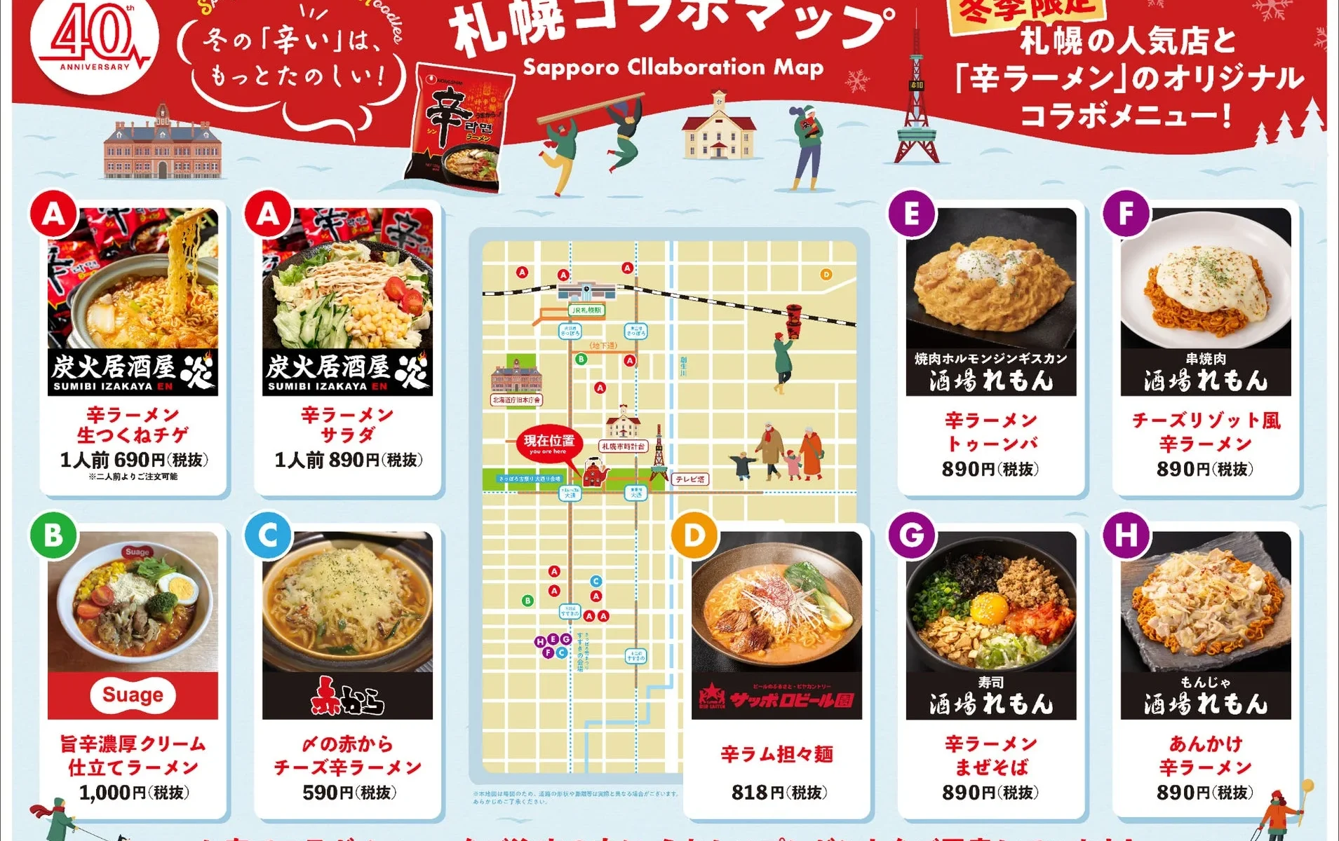 今回のコラボでは、札幌市内で飲食店を展開する企業4社53店舗で、辛ラーメンの「旨さ」と「辛さ」を活かした、個性豊かな全10種類のオリジナルメニューが楽しめます。寒い季節にぴったりの“うまからっ!”な一杯を、ぜひ体験してください!