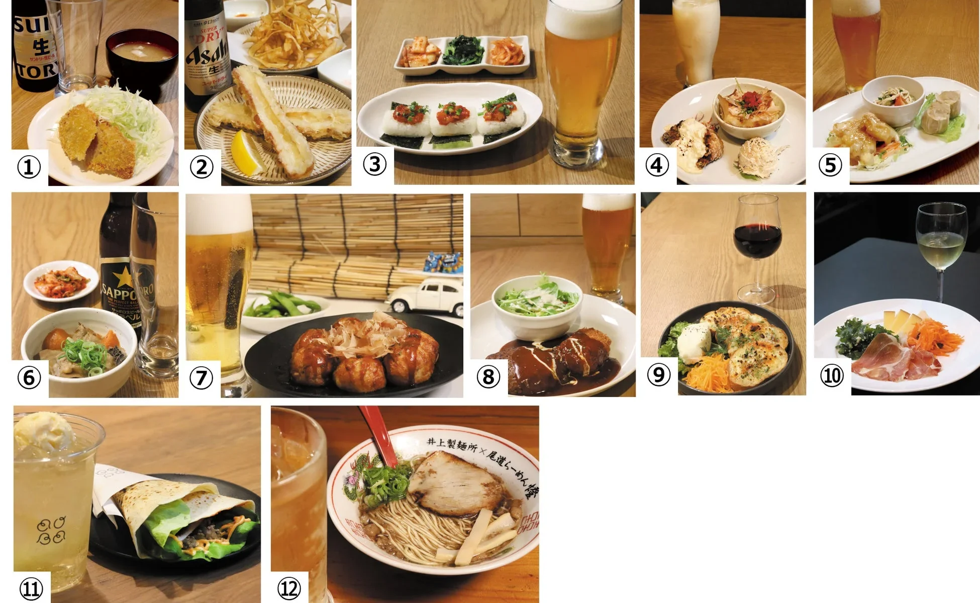 2025年12月と2026年1月にオープンしたばかりの新しいお店、「畑でとれるアイスのお店 AOBA」と「尾道らーめん 燈」も参加しています。定番の居酒屋メニューはもちろん、「大人のデザート飲み」としてアイスとハイボールを合わせたり、飲み会の締めにぴったりの「ラーメン」まで、飽きることなく飲み歩ける充実のラインナップです。