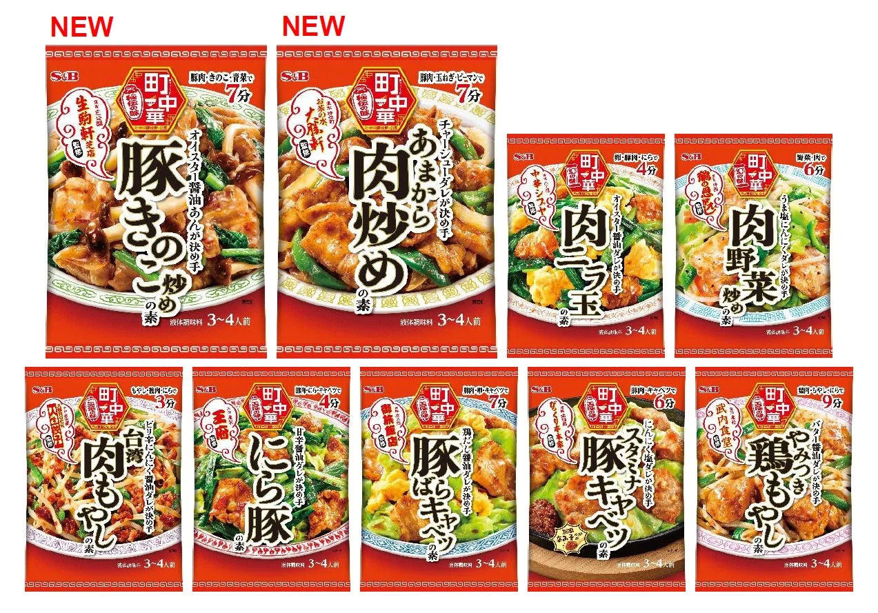 エスビー食品の「町中華」シリーズから、新しい合わせ調味料「豚きのこ炒めの素」と「あまから肉炒めの素」が2026年2月9日に全国で発売されます。さらに、既存の7品もパッケージが新しくなりますよ。