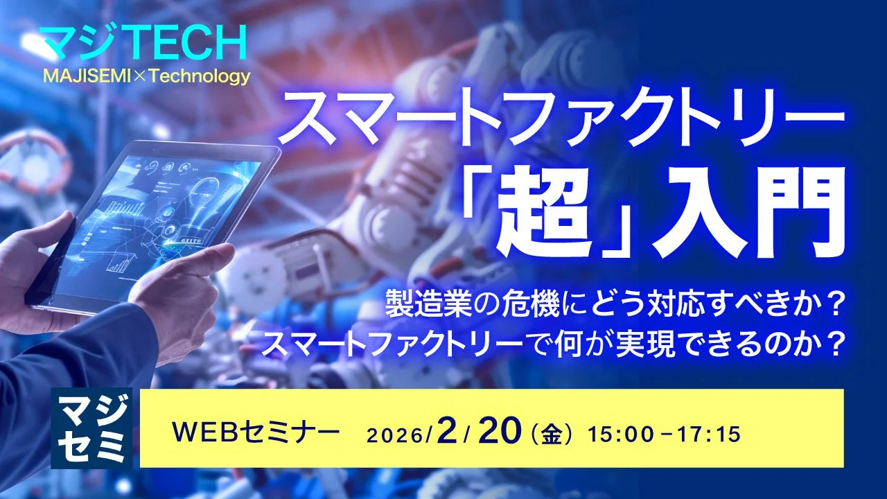 マジセミ株式会社は、製造業のデジタル化やDX推進に役立つウェビナー「スマートファクトリー『超』入門」を2026年2月20日に開催します。