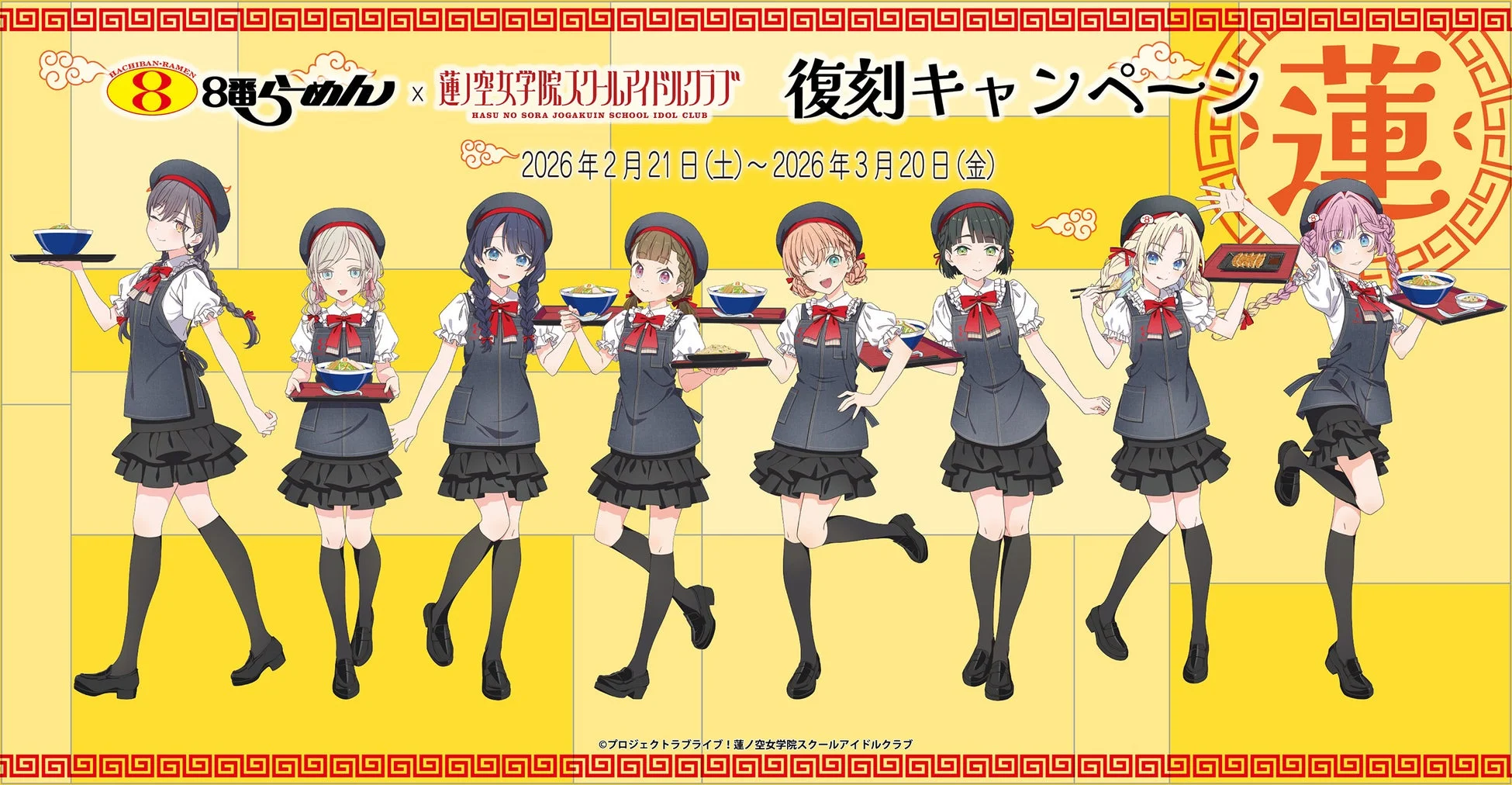 昨年夏に大好評だった「8番らーめん」と『ラブライブ!蓮ノ空女学院スクールアイドルクラブ』のコラボキャンペーンが、なんと金沢市内の17店舗で期間限定で復刻開催されます!「金沢・能登旅行編」の公開を記念したこのキャンペーンで、作品の舞台となった金沢のソウルフードを堪能しながら、推し活を楽しんでみませんか?