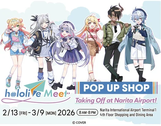 成田空港に、ホロライブ所属の人気VTuberたちのアイテムが集まる期間限定ショップ「hololive Meet Pop up Shop: Taking Off at Narita Airport!」がオープンします!2026年2月13日(金)から3月9日(月)までの期間、第1ターミナル中央ビル4階で開催されるこのポップアップショップでは、ここでしか手に入らない特別なグッズやフォトスポットが登場します。