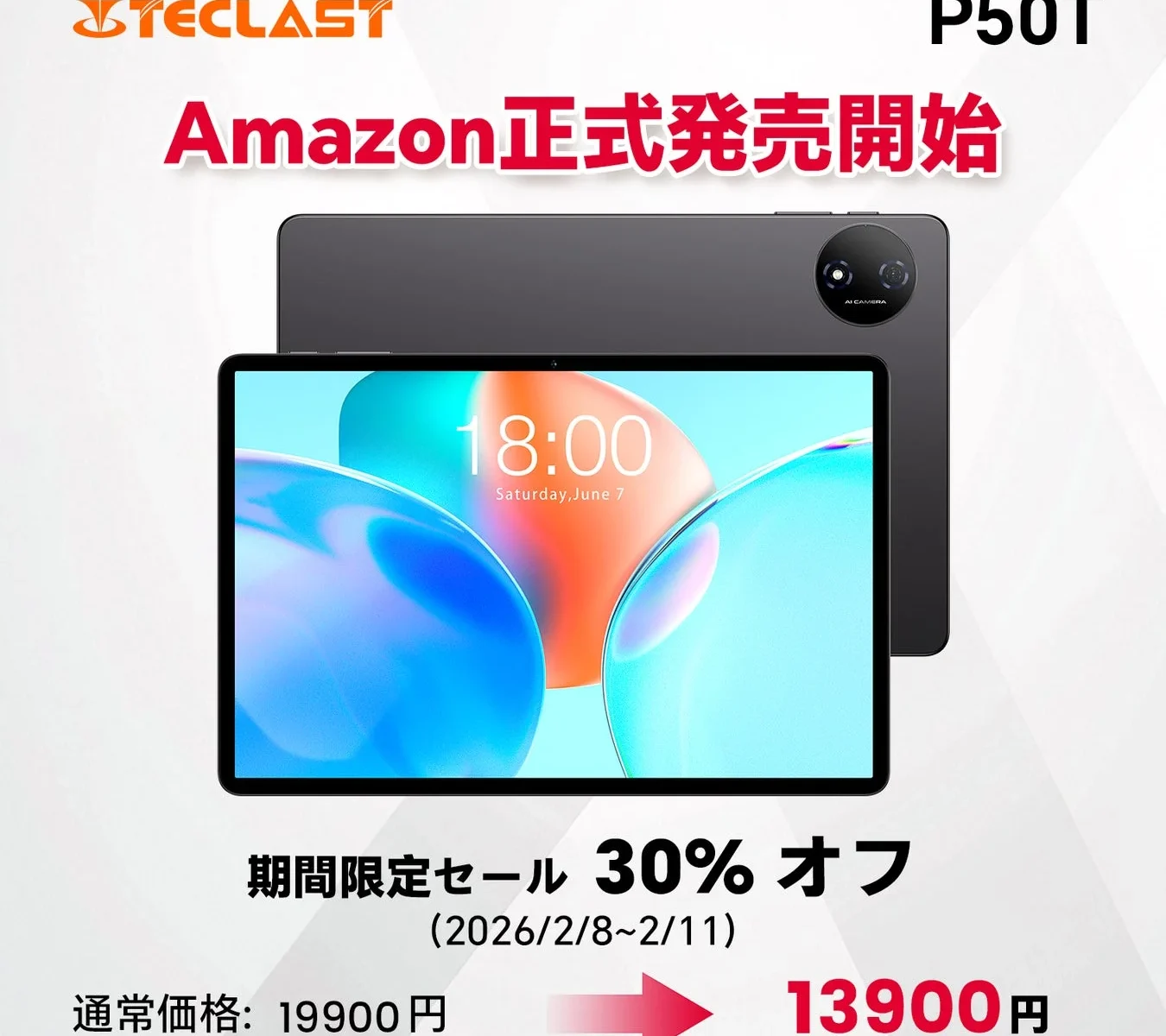 「Teclast P50T」の発売を記念して、お得なセールとキャンペーンが実施されています。