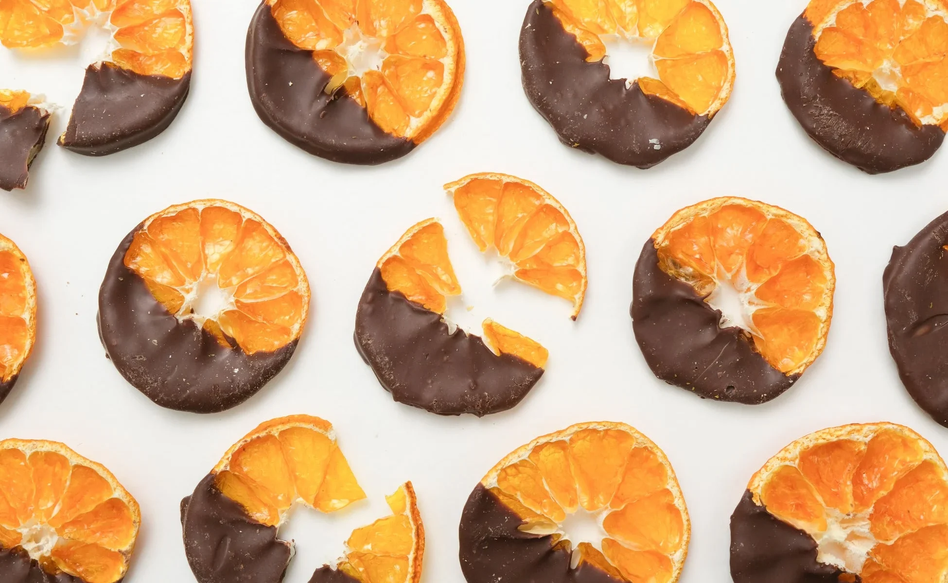 あえてスイートチョコを半分だけにすることで、重くなりすぎない絶妙なバランスに仕上がっています。噛むたびにみかんの爽やかさが広がり、その後にチョコのコクがゆっくりと重なる、変化のある味わいが楽しめます。