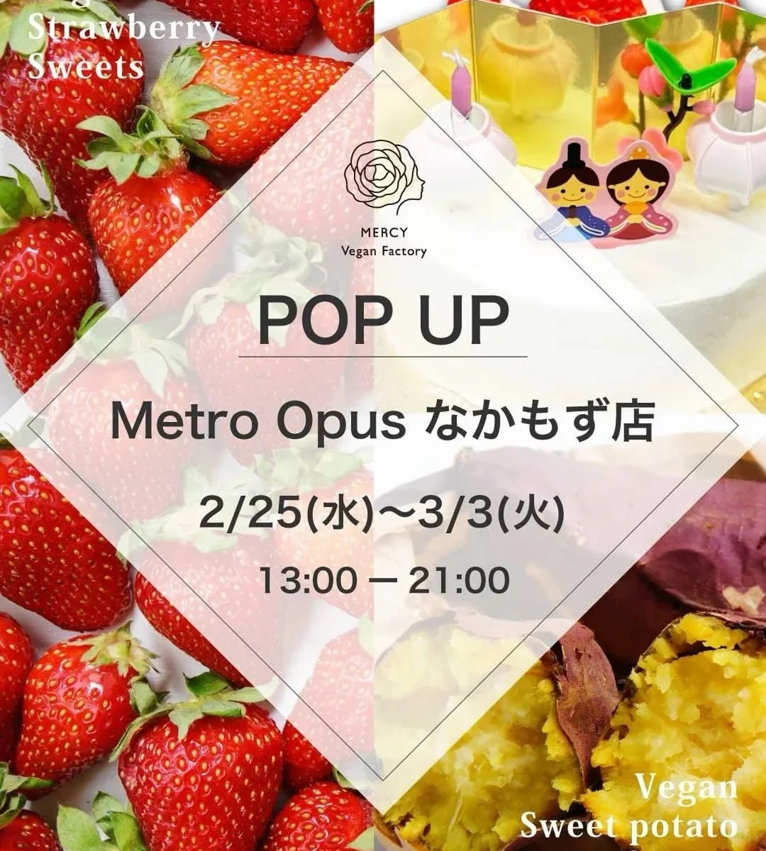 「MERCY Vegan Factory」が、2026年2月25日(水)から3月3日(火)までの期間限定で、Osaka Metro御堂筋線なかもず駅構内の「Metro Opus なかもず店」にポップアップショップをオープンします!