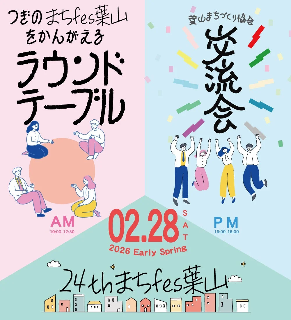 葉山町で年に一度開催される「まちfes葉山」が、2026年2月28日(土)に開催されます!24回目を迎える今回は、午前中に「つぎのまちfes葉山をかんがえるラウンドテーブル」、午後に「交流会」という、1日を通して葉山のまちづくりについて考え、交流を深める特別なイベントとして企画されています。