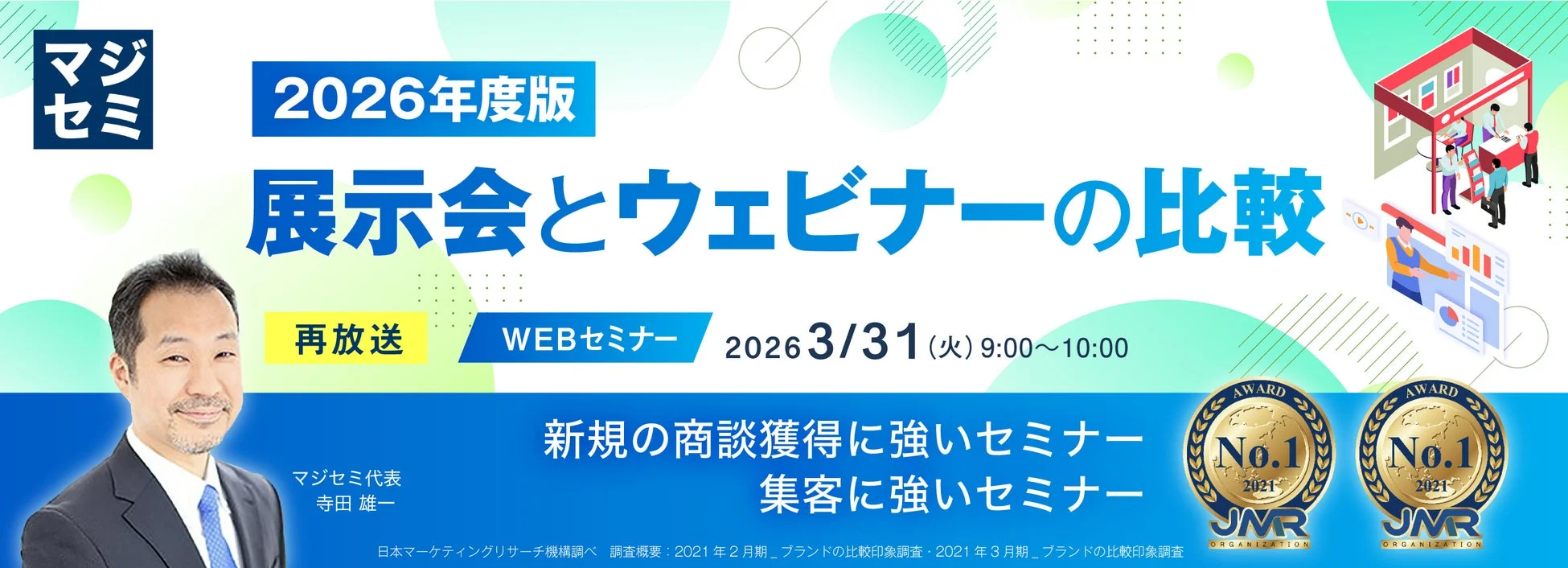 マジセミ株式会社は、ビジネスパーソン向けに「【再放送】2026年版 展示会とウェビナーの比較」というテーマのウェビナーを開催します。