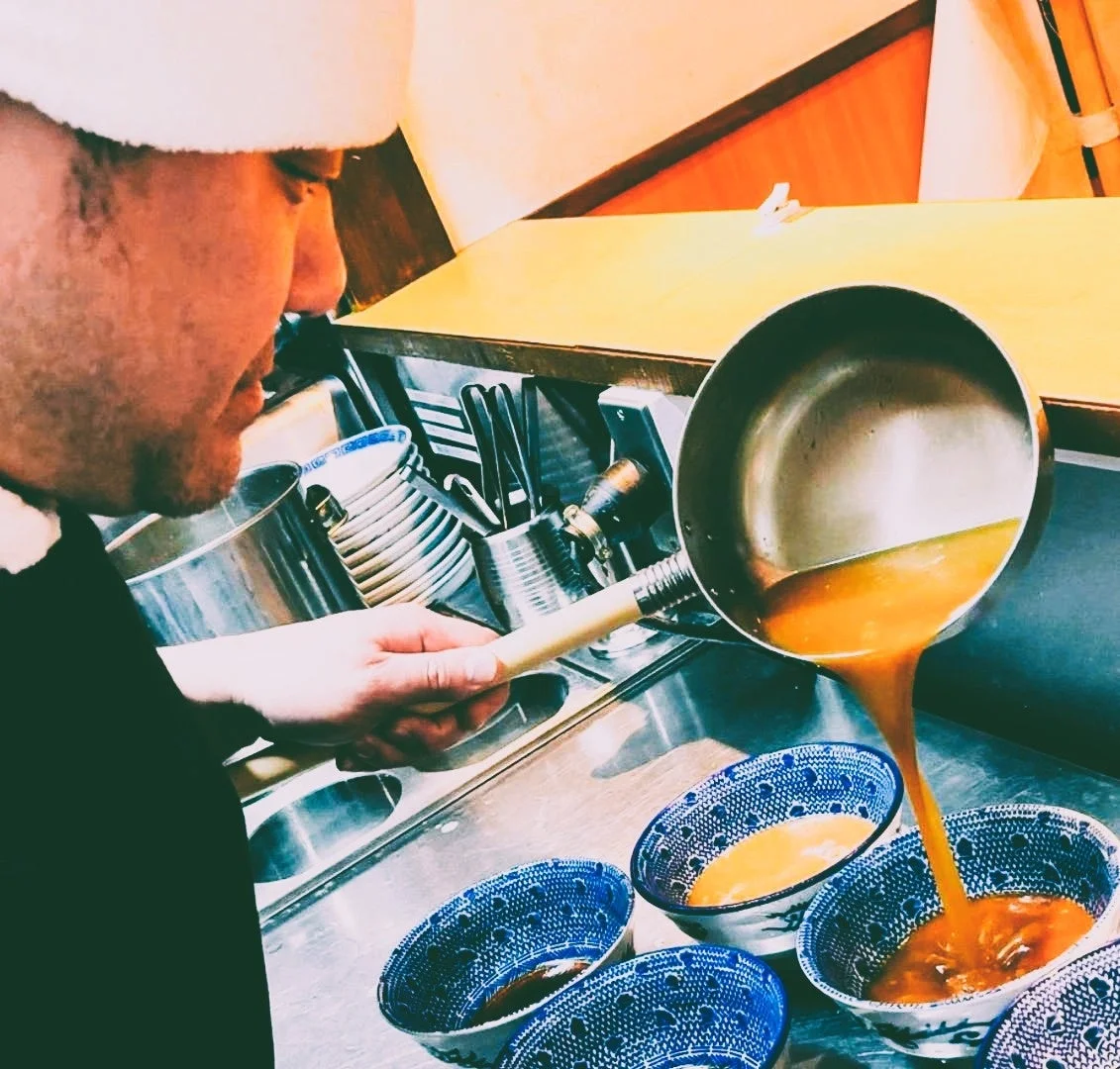 スープ: 鶏ガラや豚骨といった動物系の素材に、厳選された魚介節を贅沢に使い、重厚ながらも最後の一滴まで飽きのこない、キレのある味わいを実現しています。