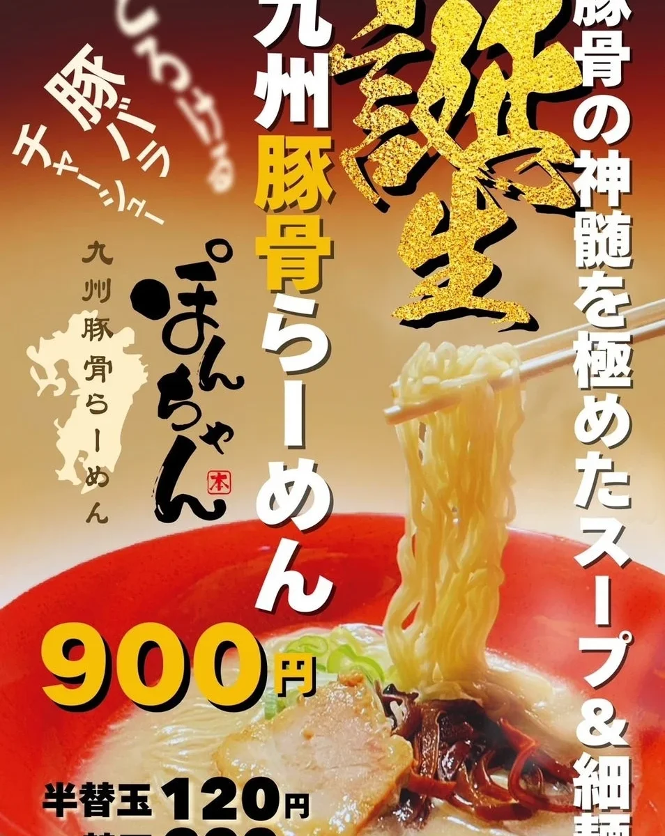 新鎌ケ谷エリアに、待望の本格九州豚骨ラーメン店がオープンしました!「成田山らーめんストリート イオン鎌ケ谷店」に、新ブランド「九州豚骨らーめん ぽんちゃん」が登場し、地元の方々はもちろん、電車を利用する方々からも注目を集めています。