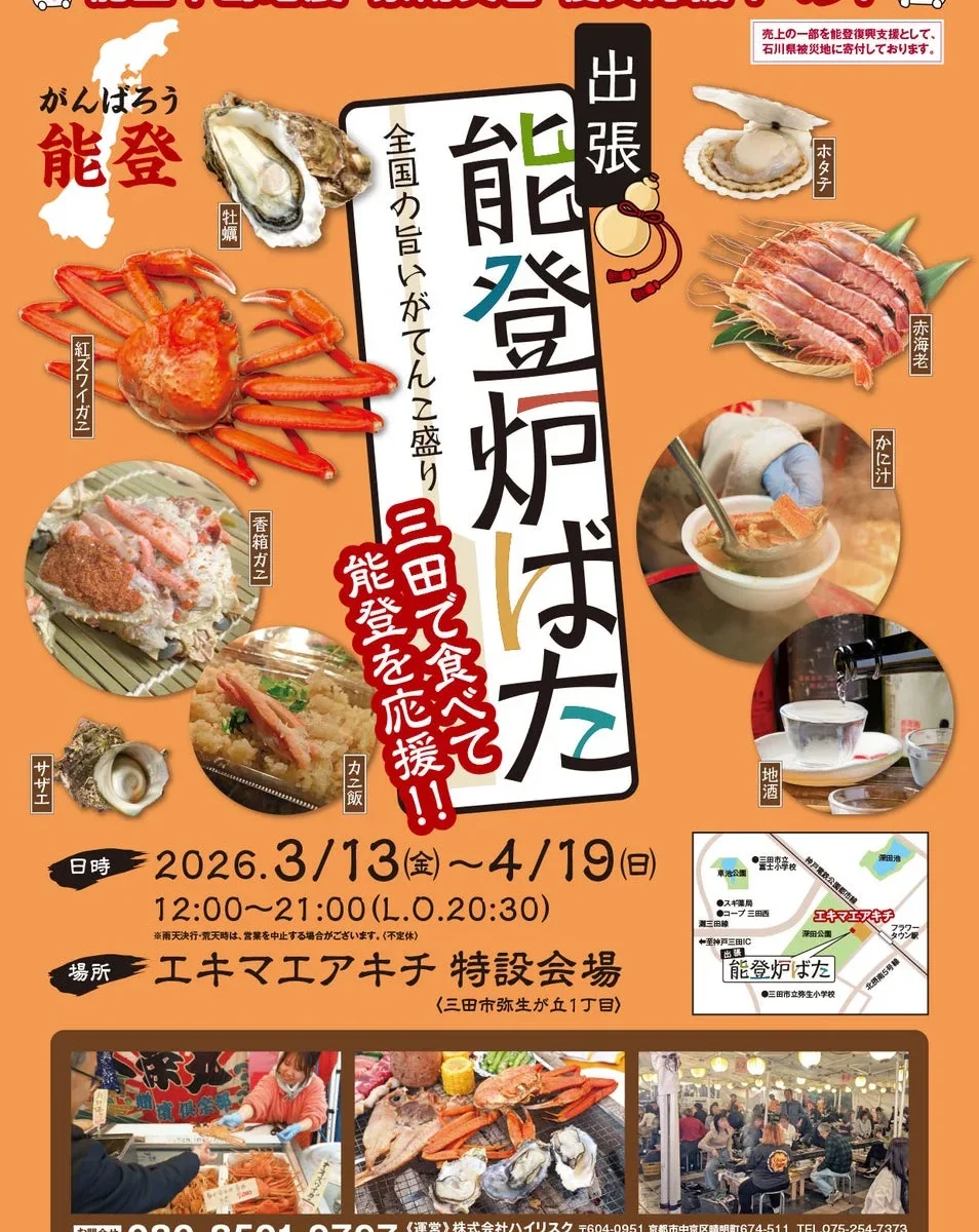 2024年1月1日に発生した能登半島地震、そして9月の豪雨災害。二度の大きな災害からの復興を目指し、能登の美味しい海の幸を堪能できるイベント「出張 能登炉ばた」が開催されます。