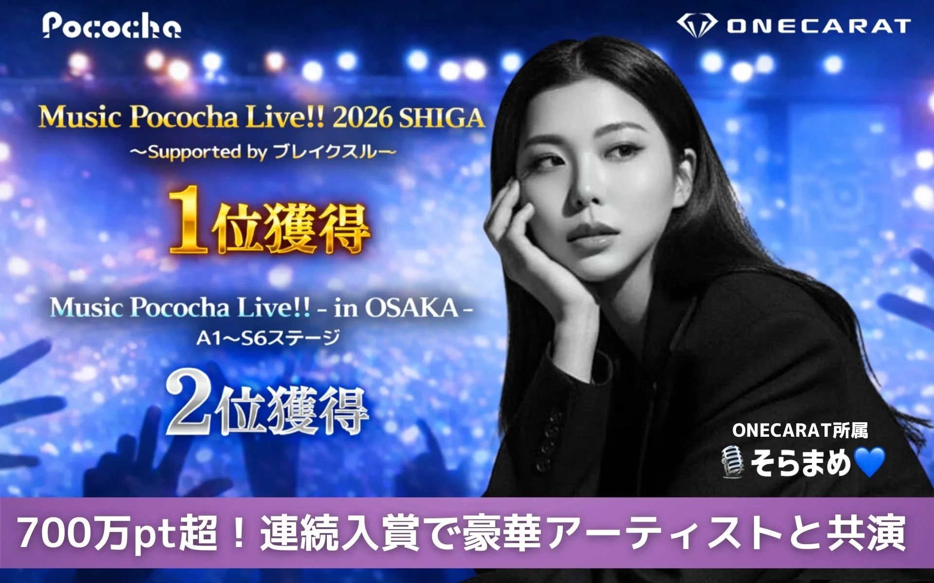 ONECARATに所属するライバー「🎙️そらまめ💙」さんが、ライブ配信アプリ「Pococha(ポコチャ)」で開催された2つの大型音楽イベントで、なんと連続して上位に入賞しました!その結果、念願のリアルライブ出演権を獲得したことが発表されました。