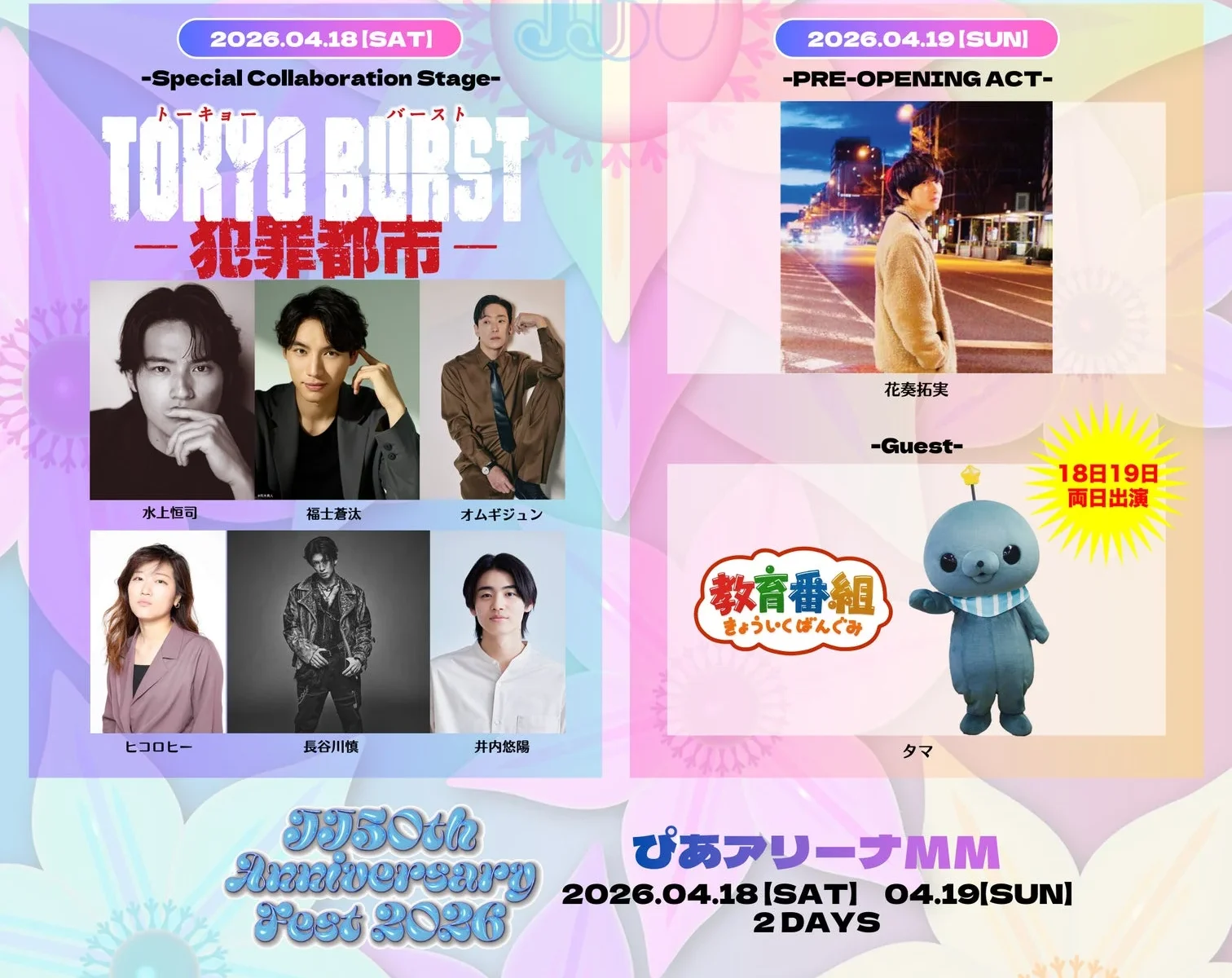 4月18日(土)には、映画『TOKYO BURST-犯罪都市-』スペシャルコラボステージが開催されます。映画に出演する水上恒司さん、福士蒼汰さん、オム・ギジュンさん、ヒコロヒーさん、長谷川慎さん、井内悠陽さんが登場し、内田英治監督と共に初出し映像やスペシャルトークで映画の魅力をたっぷりお届けします。さらに、THE RAMPAGEが主題歌『BLACK TOKYO』とSecondary Theme Song『Maverick』を初披露するとのこと。これは見逃せませんね!