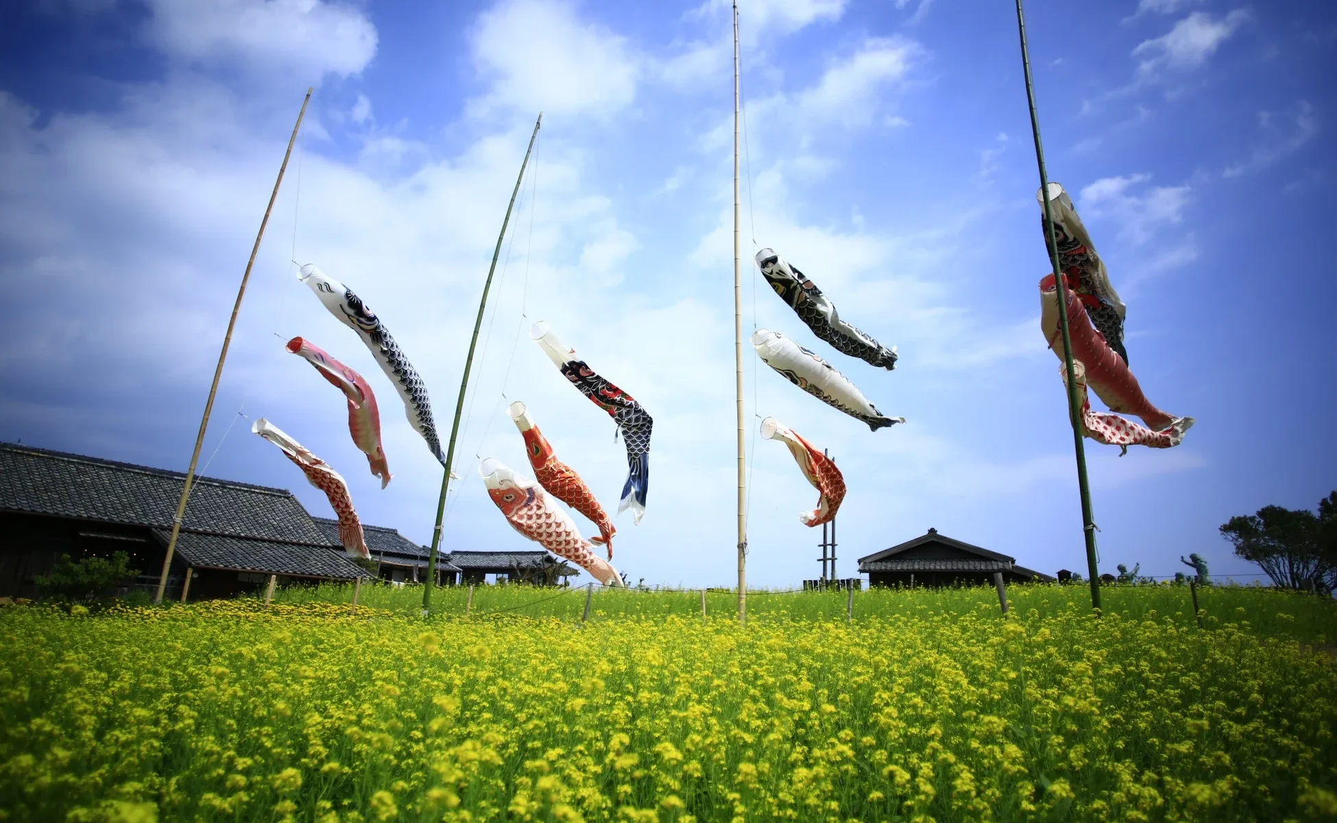 ポカポカ陽気の小豆島にある「二十四の瞳映画村」では、春の訪れとともに、3万本の菜の花が咲き誇り、一面を黄色い絨毯で彩ります。見頃は3月下旬から4月にかけて。ノスタルジックな風景の中で、子供たちの声や鳥のさえずりが聞こえてくるような、のどかで懐かしい時間が流れます。