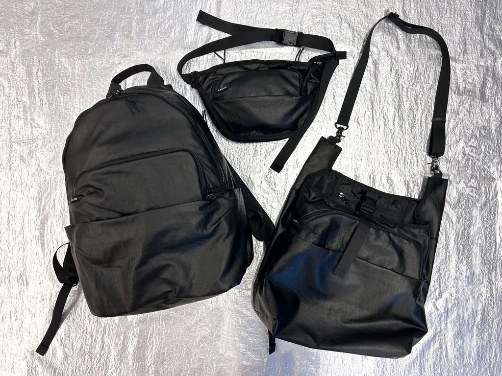 今回の新作は、軽くてちょっぴり光沢のあるナイロン素材を使った、ウエストショルダー、ショルダーバッグ、デイパックの3種類がラインナップされているんだ。ムダを省いたスッキリしたデザインと使いやすい素材感で、普段使いから旅行まで、いろんなシーンで大活躍しそうだよ!