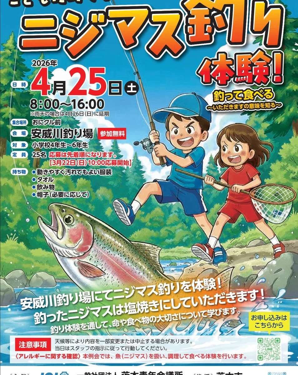茨木青年会議所は、子どもたちが自然の中で食の大切さを学ぶことを目的に、「ニジマス釣り体験 ~いただきますの意味を知る~」を2026年4月25日(土)に開催します。