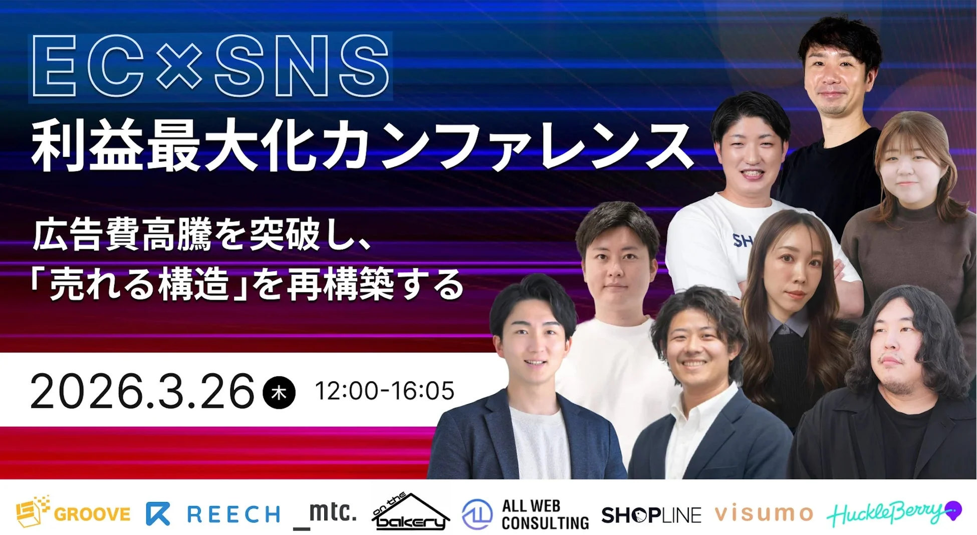 2026年3月26日(木)にオンラインで開催される「EC×SNS利益最大化カンファレンス」に、株式会社on the bakeryが登壇します。