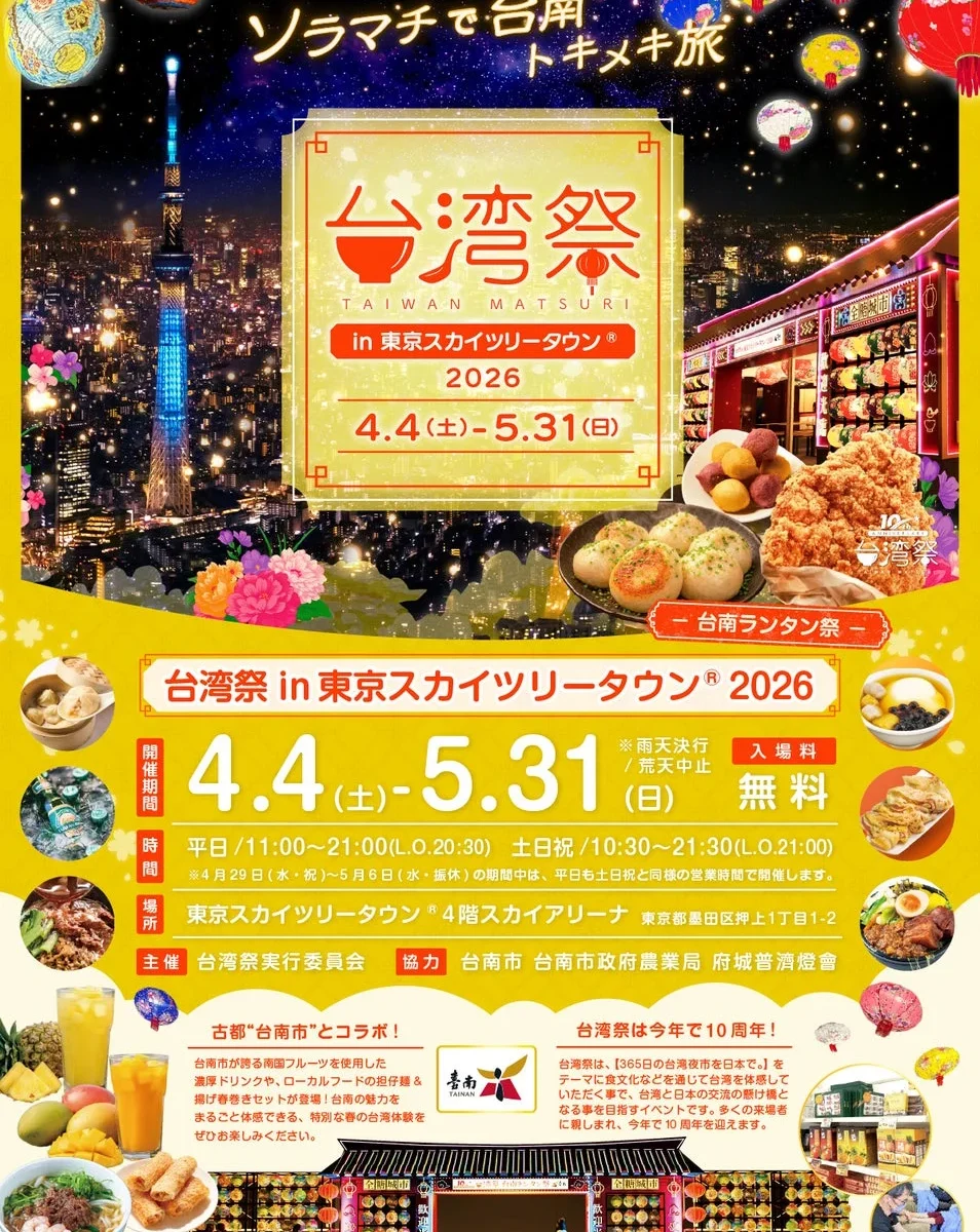 春の東京スカイツリータウン®で、台南の魅力を存分に体感できる特別な台湾祭にぜひ注目してください。