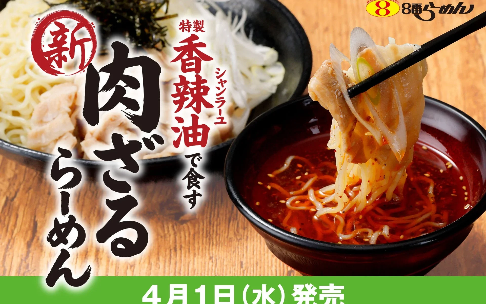 1967年創業の「野菜らーめん」でおなじみの「8番らーめん」から、春先にぴったりの新メニュー「肉ざるらーめん」が2026年4月1日(水)より期間限定で登場します!石川県、富山県、福井県、岡山県、長野県の店舗で味わえますよ。