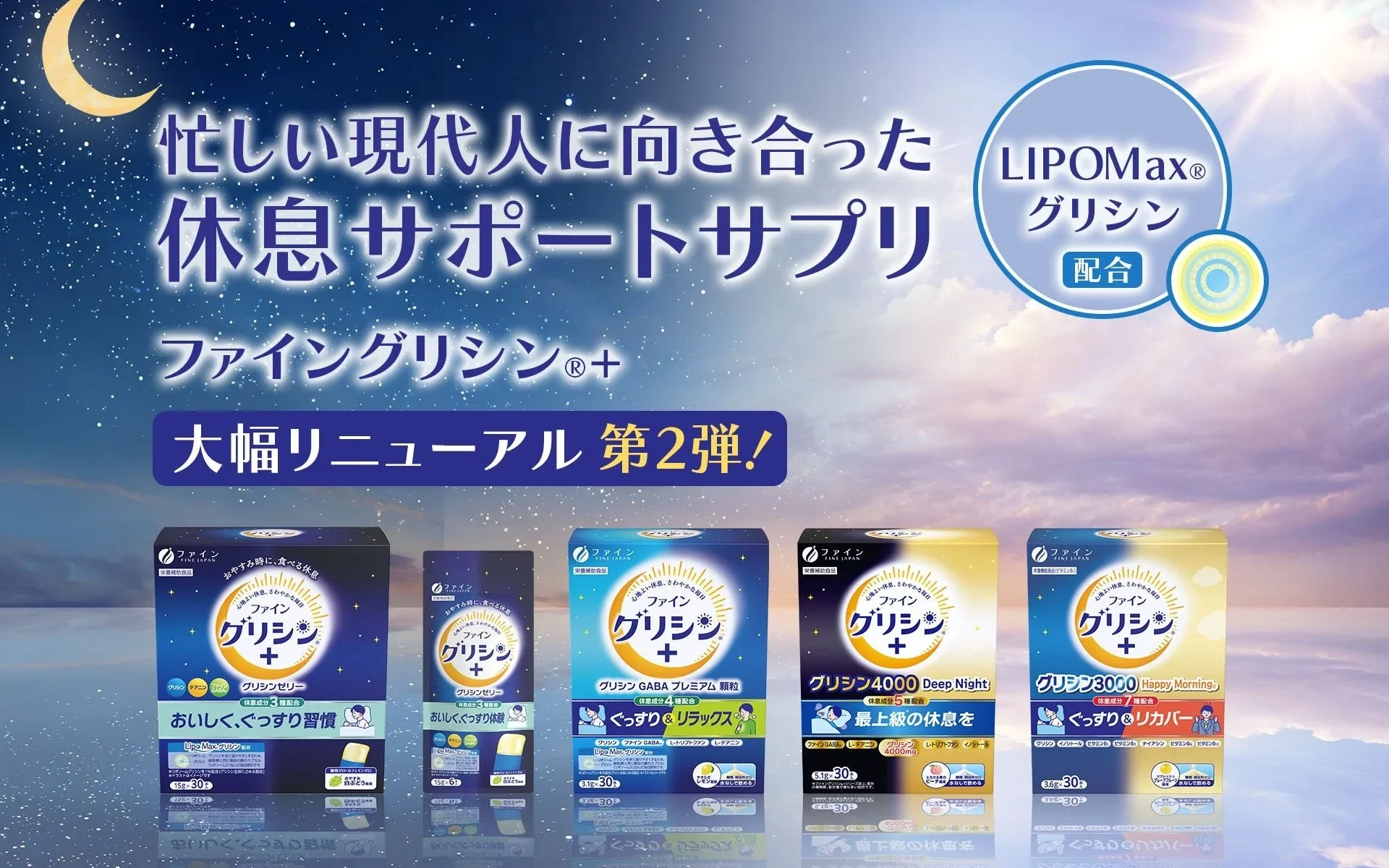 現代社会は本当に忙しいですよね。そんな毎日を頑張る皆さんを応援するために、株式会社ファインから「ファイングリシン®+」シリーズが大幅にリニューアルされました!