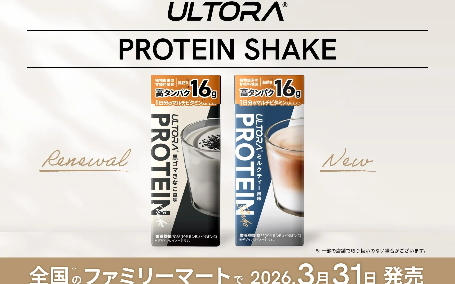 シリーズ累計2億食を突破した「ULTORA プロテインシェイク」が、さらに美味しく、そしてお求めやすい新価格になってリニューアルしました!2026年3月31日(火)より、全国のファミリーマートで順次販売が開始されます。
