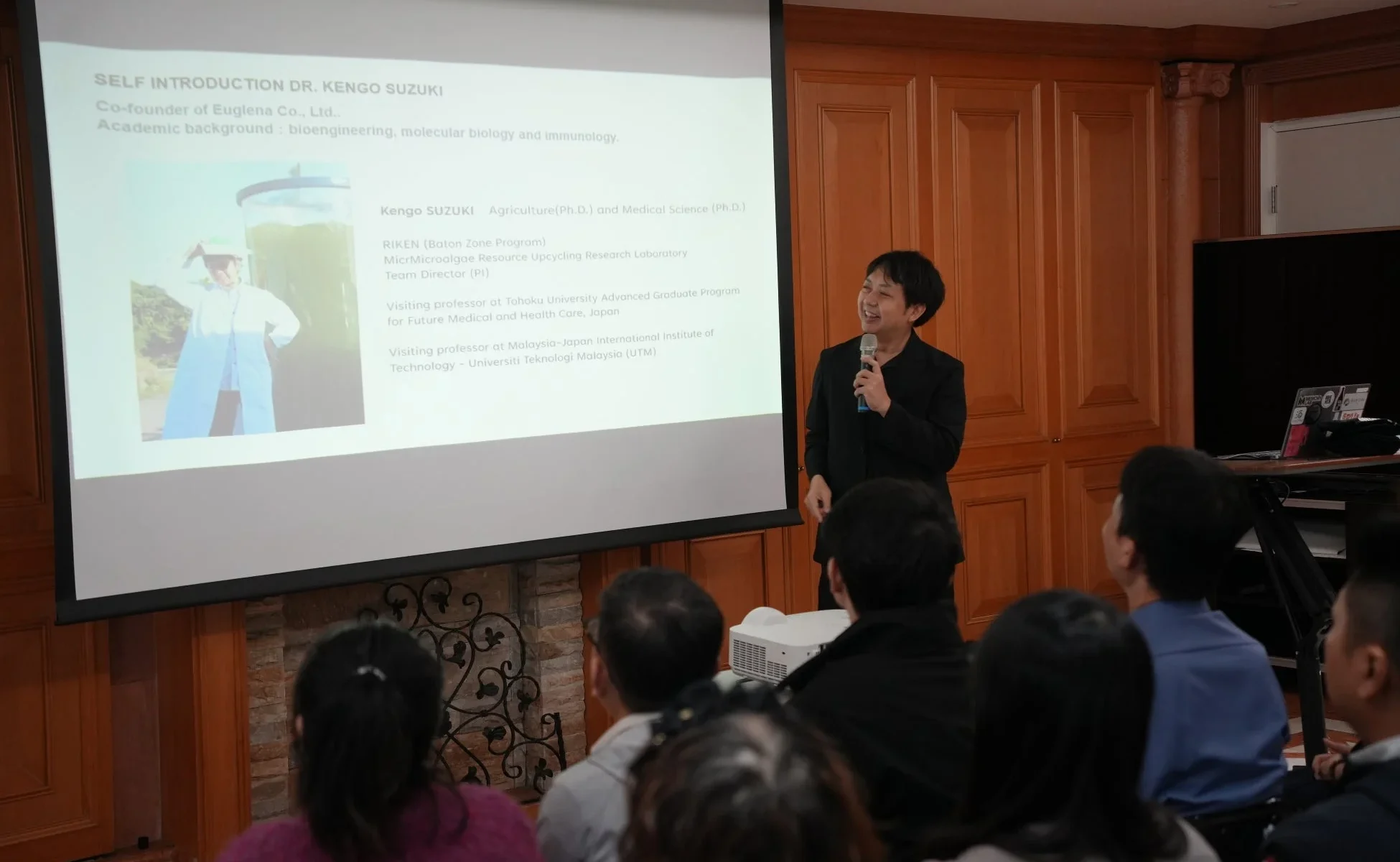 スペースシードホールディングスの代表を務める鈴木健吾氏が、2025年11月13日に台湾の統園企業股份有限公司を訪問し、講演を行いました。この講演では、微細藻類クロレラと日本の発酵技術を組み合わせた、新しいウェルネス飲料「MATCHA NOVA」に関する「MATCHA NOVA PROJECT」が紹介されました。