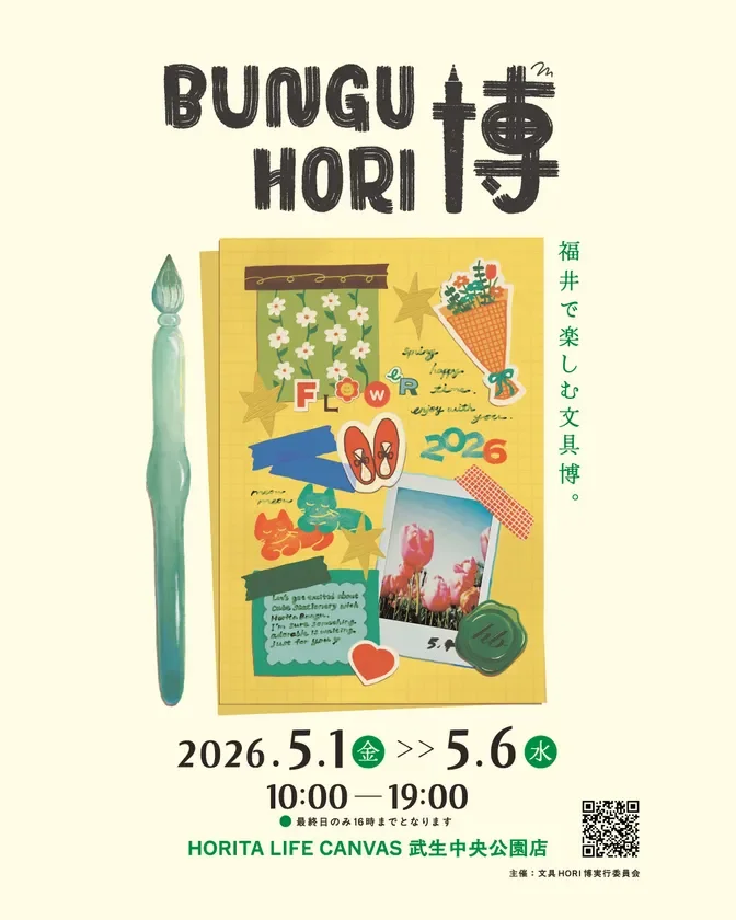 今年のゴールデンウィークは、福井県で特別な文具イベント「文具HORI博」が開催されるよ!2026年5月1日(金)から6日(水)までの6日間、HORITA LIFE CANVASに全国の人気メーカーや作家など約17ブランドが集結するんだ。