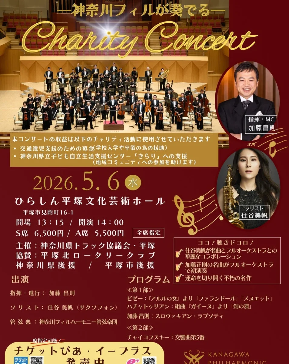 ゴールデンウィークの最終日、2026年5月6日(水・祝)に、ひらしん平塚文化芸術ホールで特別なチャリティコンサートが開催されます。神奈川フィルハーモニー管弦楽団と神奈川県トラック協議会・平塚がタッグを組み、子どもたちの未来へ「希望の流れ」を贈る異色のコラボレーションです。