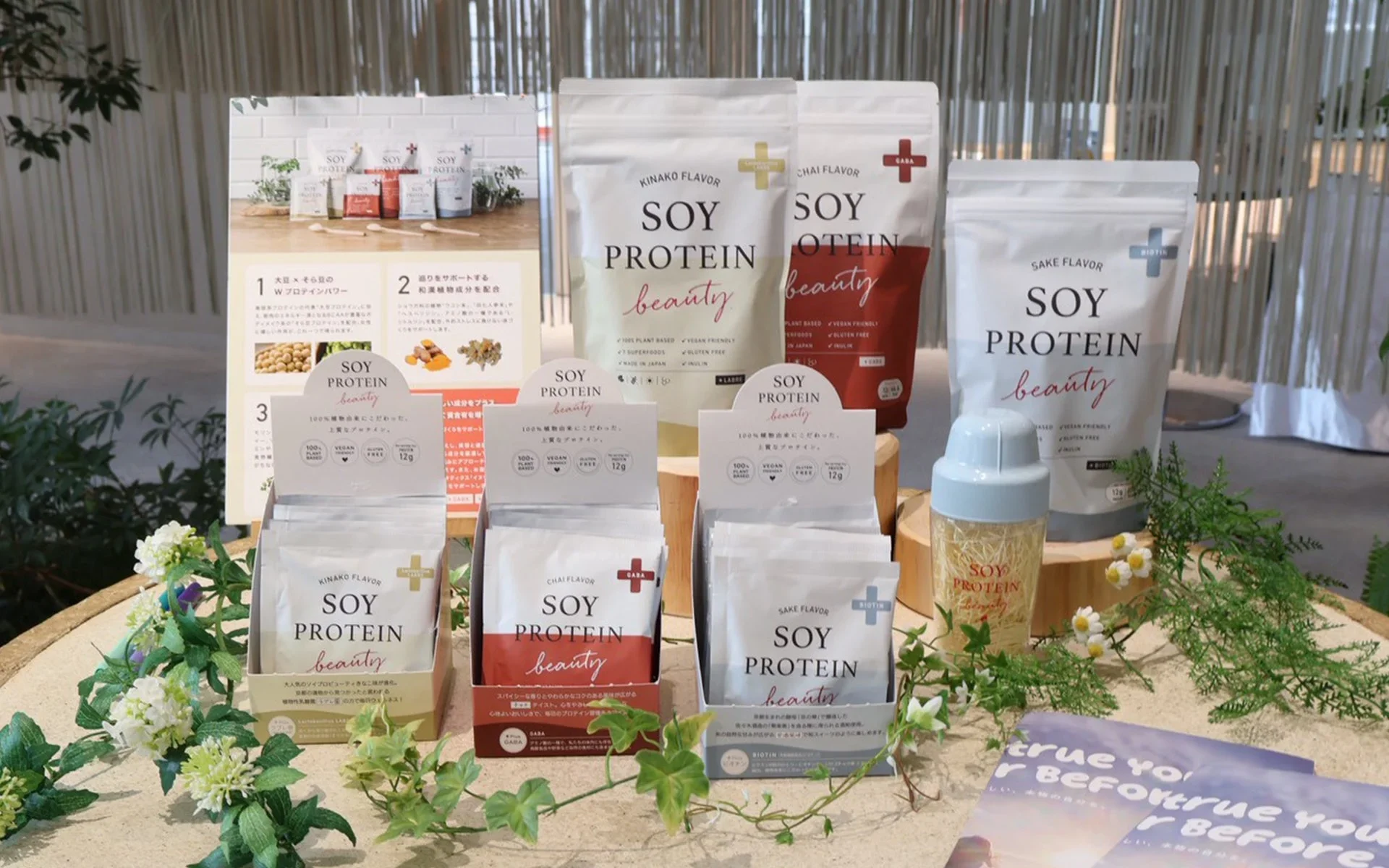 ラインナップは、KINAKO、CHAI、SAKE(栄養機能食品ビオチン)の3種類で、ライフスタイルに合わせて楽しめます。