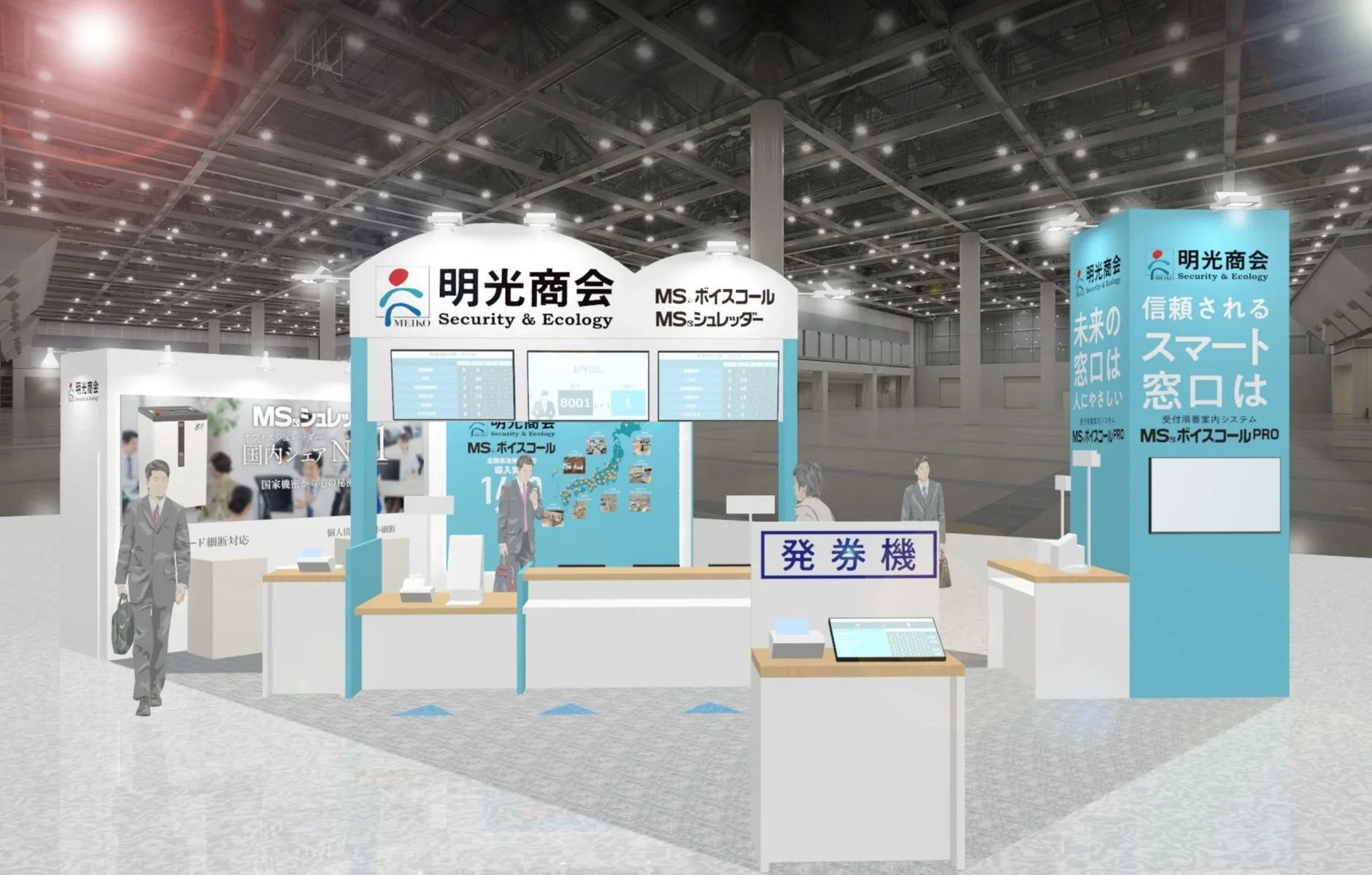 来場者の方々に、窓口での「待たせない・迷わせない」を実現する受付順番案内システムや、バックヤード業務の効率化を支援するソリューションを提案するとのことです。