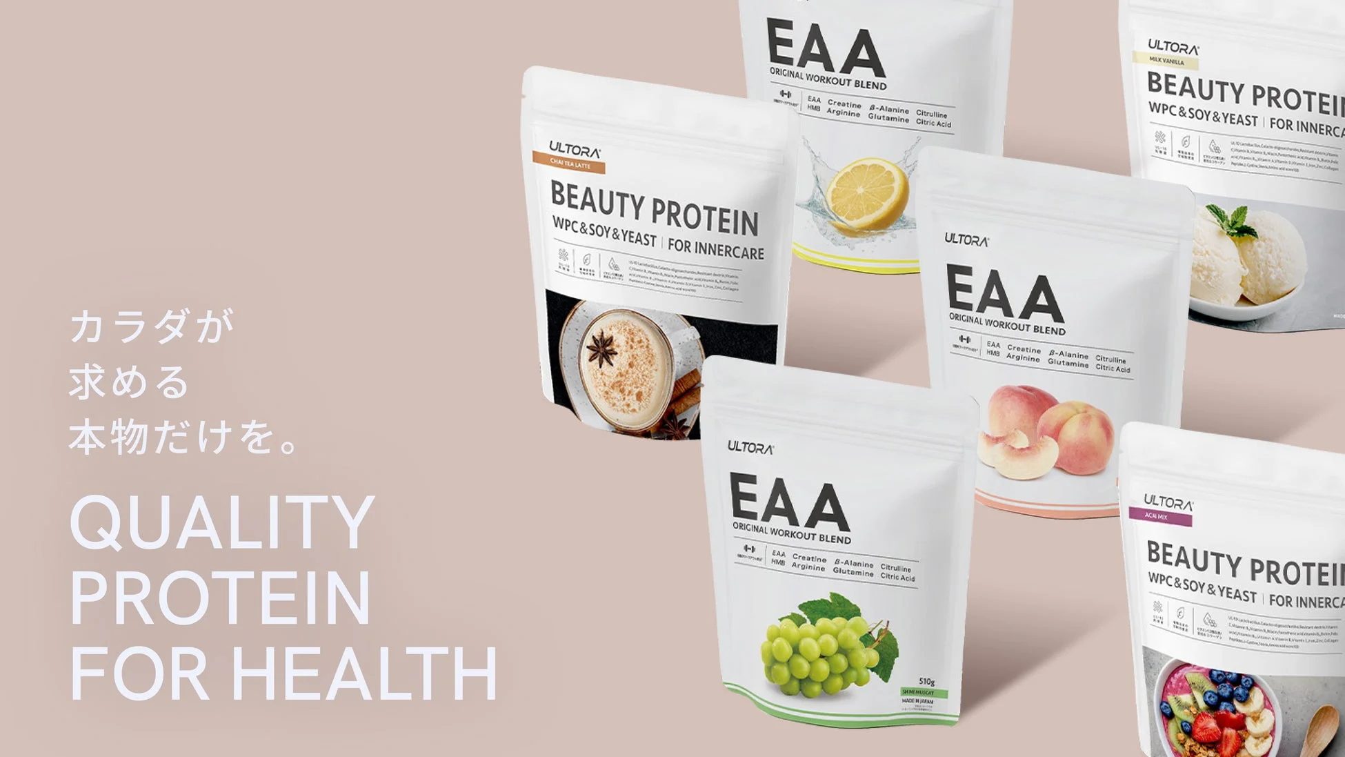 ボディメイクブランド「ULTORA(ウルトラ)」が、成分設計を抜本的に見直した「EAA ORIGINAL WORKOUT BLEND」3種と、「BEAUTY PROTEIN(ビューティープロテイン)」の新フレーバー3種を、2026年4月20日(月)18時より各オンラインストアで同時発売します。