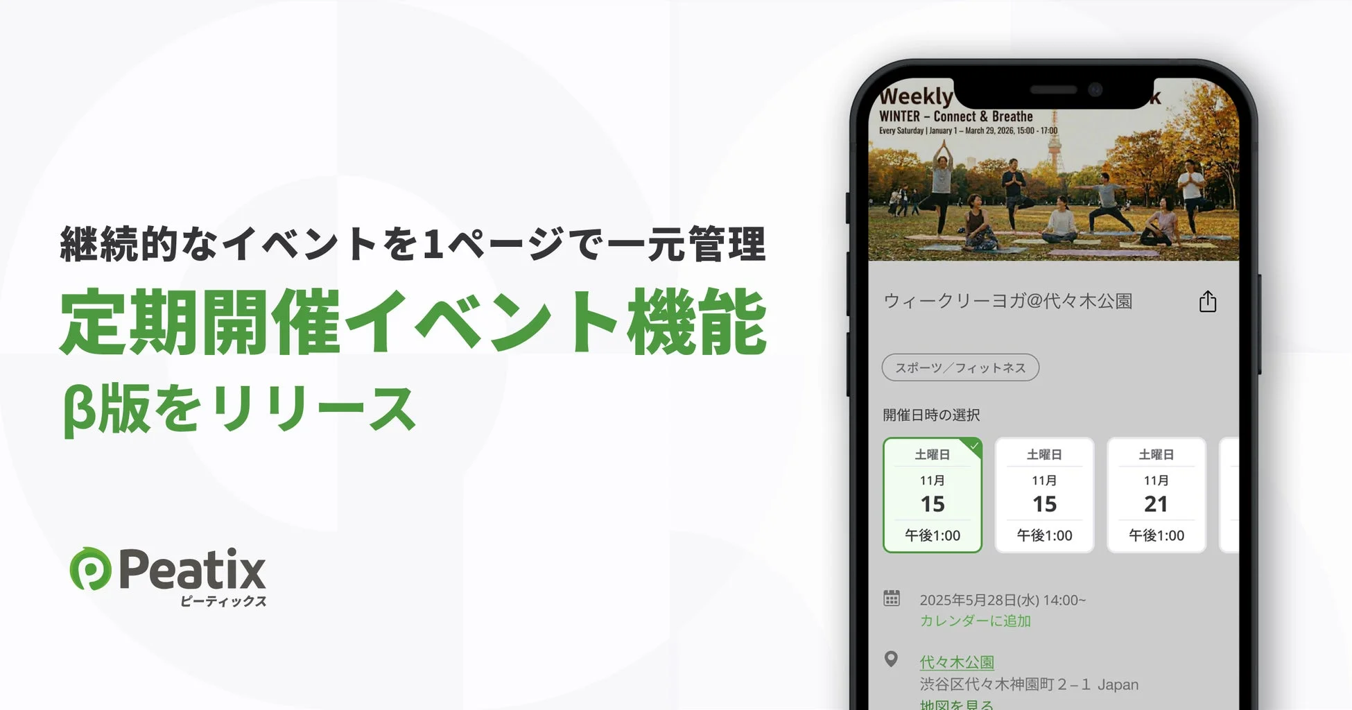 イベント・コミュニティのプラットフォーム「Peatix」から、定期開催イベントをぐっと便利にする新機能のβ版がリリースされました! これまで繰り返し開催するイベントの告知や運営に手間を感じていた主催者さんにとって、まさに朗報です。