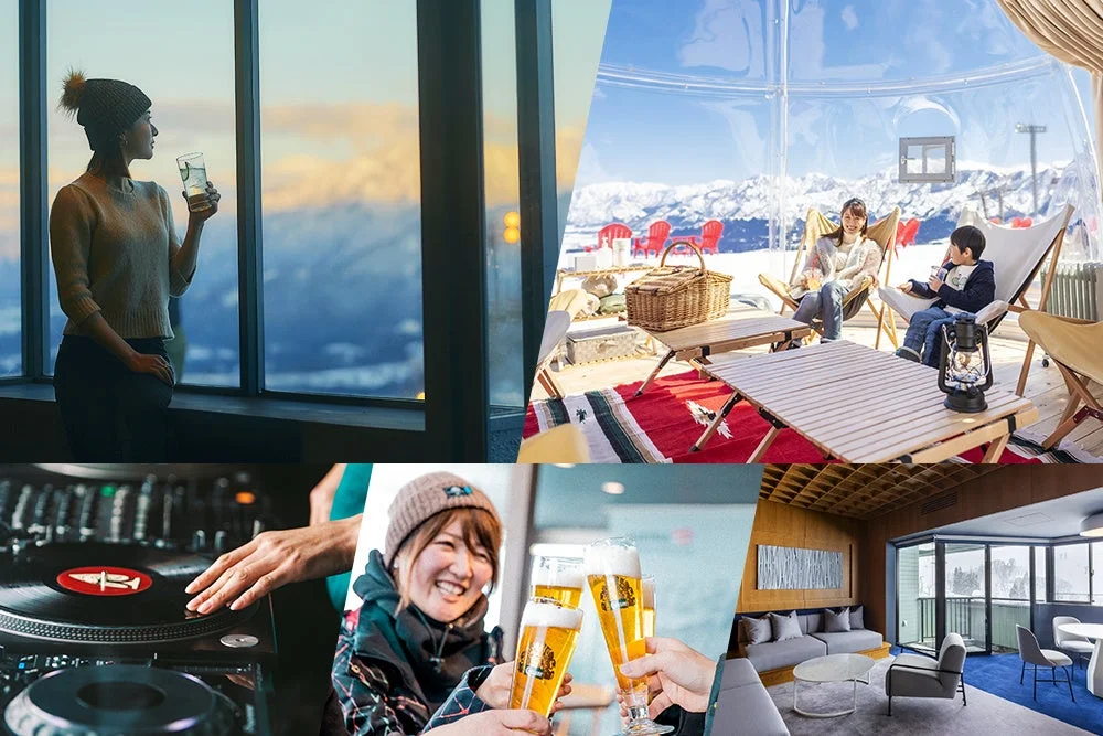 「アプレスキー」とは、フランス語で「スキーの後」という意味。ヨーロッパのスキーリゾートでは、滑り終わった後に食事やお酒を楽しみ、その余韻に浸る文化が盛んです。石打丸山スキー場では、このアプレスキー文化を取り入れ、日帰りでも宿泊でも、滑る人も滑らない人も、誰もが快適で魅力的な滞在を体験できる場所を目指しています。