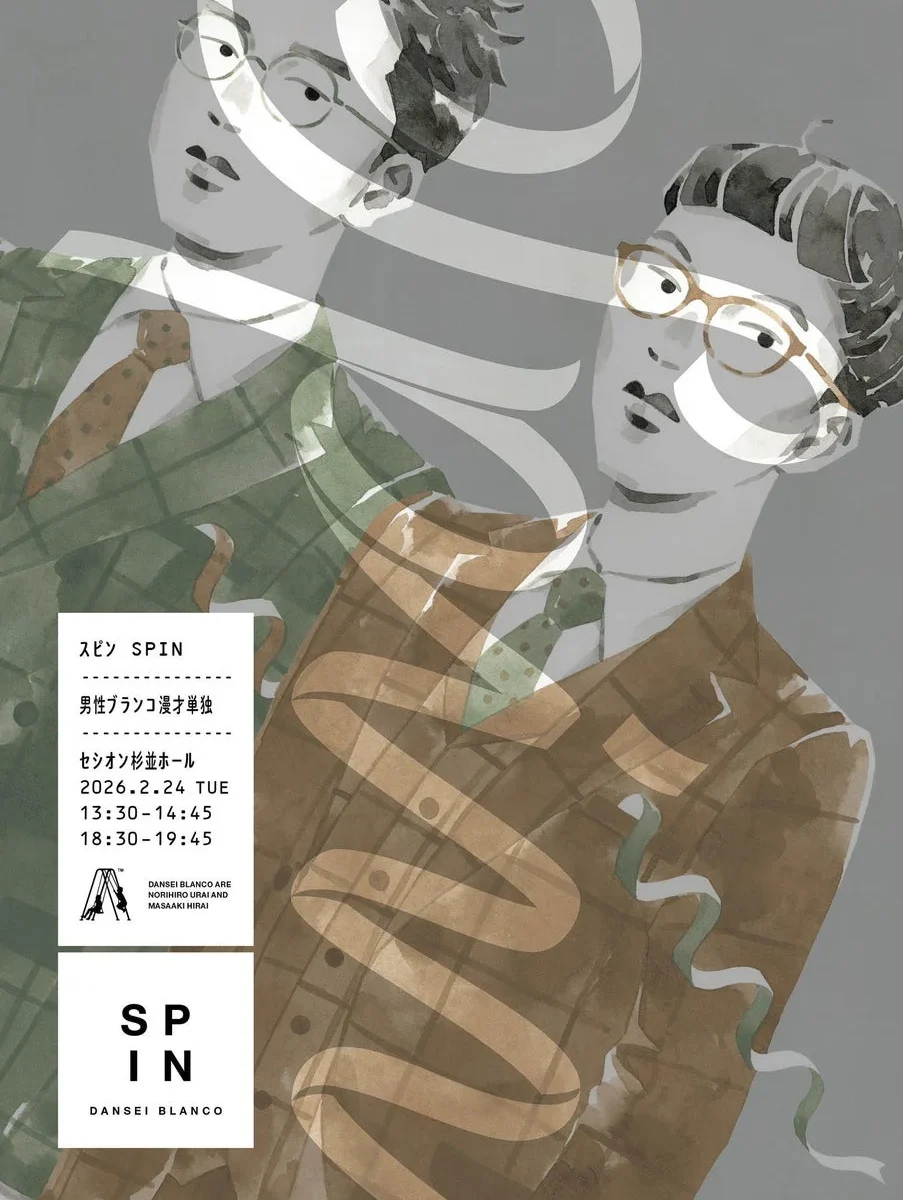 実力派お笑いコンビ「男性ブランコ」が、M-1グランプリのラストイヤーを迎える2026年に、コンビ初となる漫才単独ライブ「スピン」を開催することが決定しました!キングオブコント、M-1グランプリの決勝経験を持つ彼らが、新たな挑戦に挑みます。