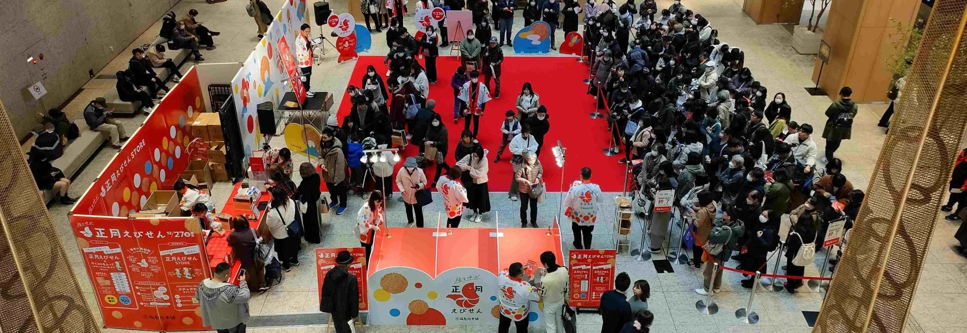 年末はぜひ名古屋駅KITTE名古屋で「福を呼ぶ 正月えびせん」イベントに参加して、たくさんの福と笑顔をもらってくださいね!